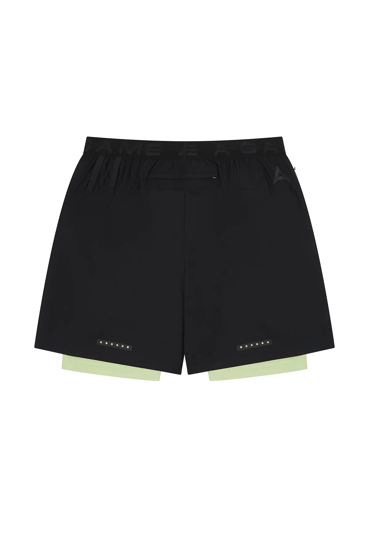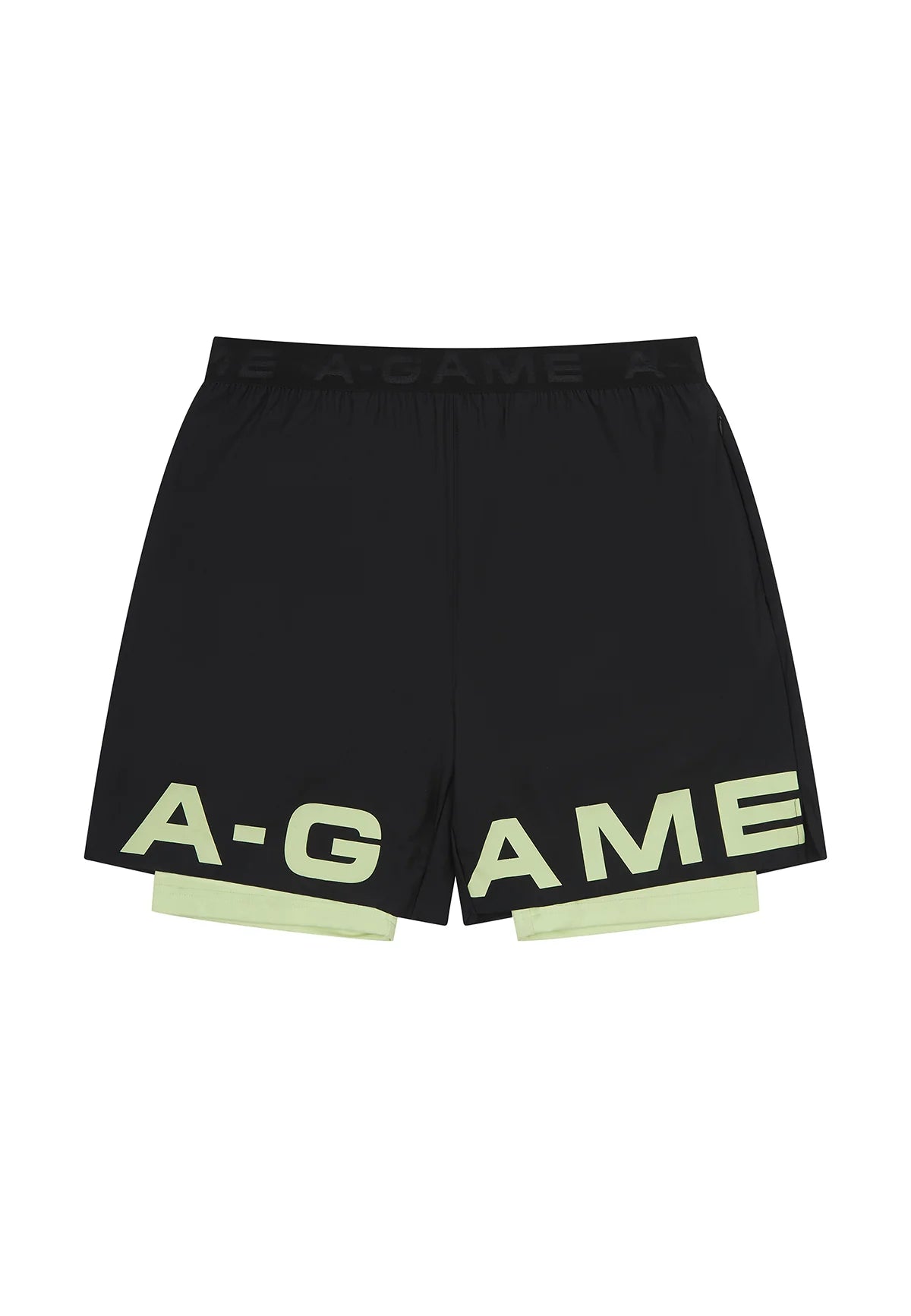 MENS A-GAME 2 IN 1 TRAINING SHORTS - BLACK/LIME