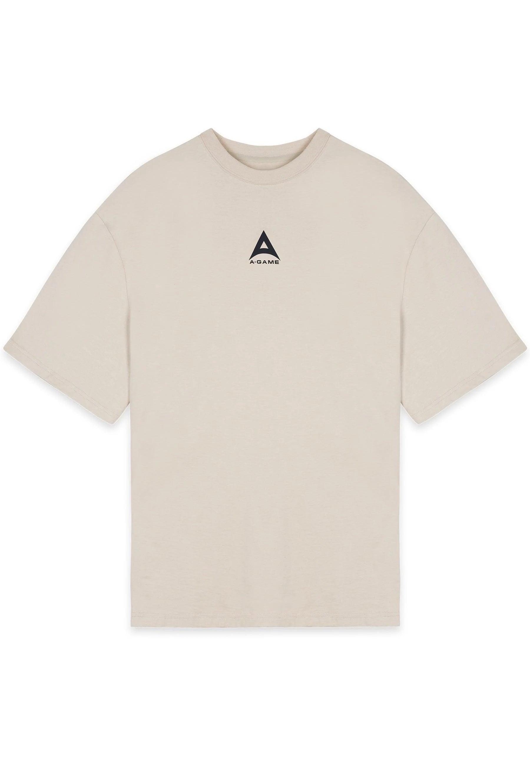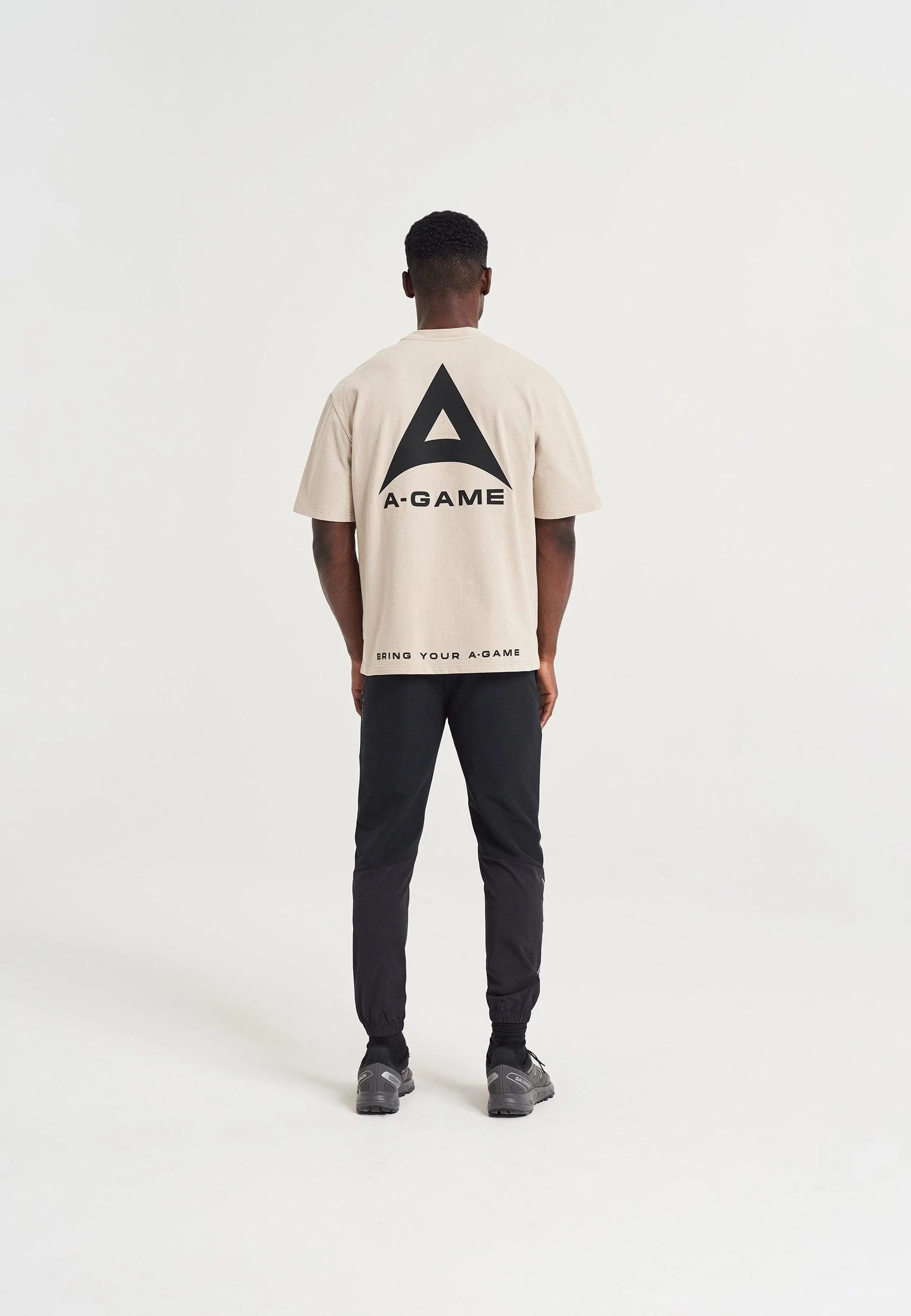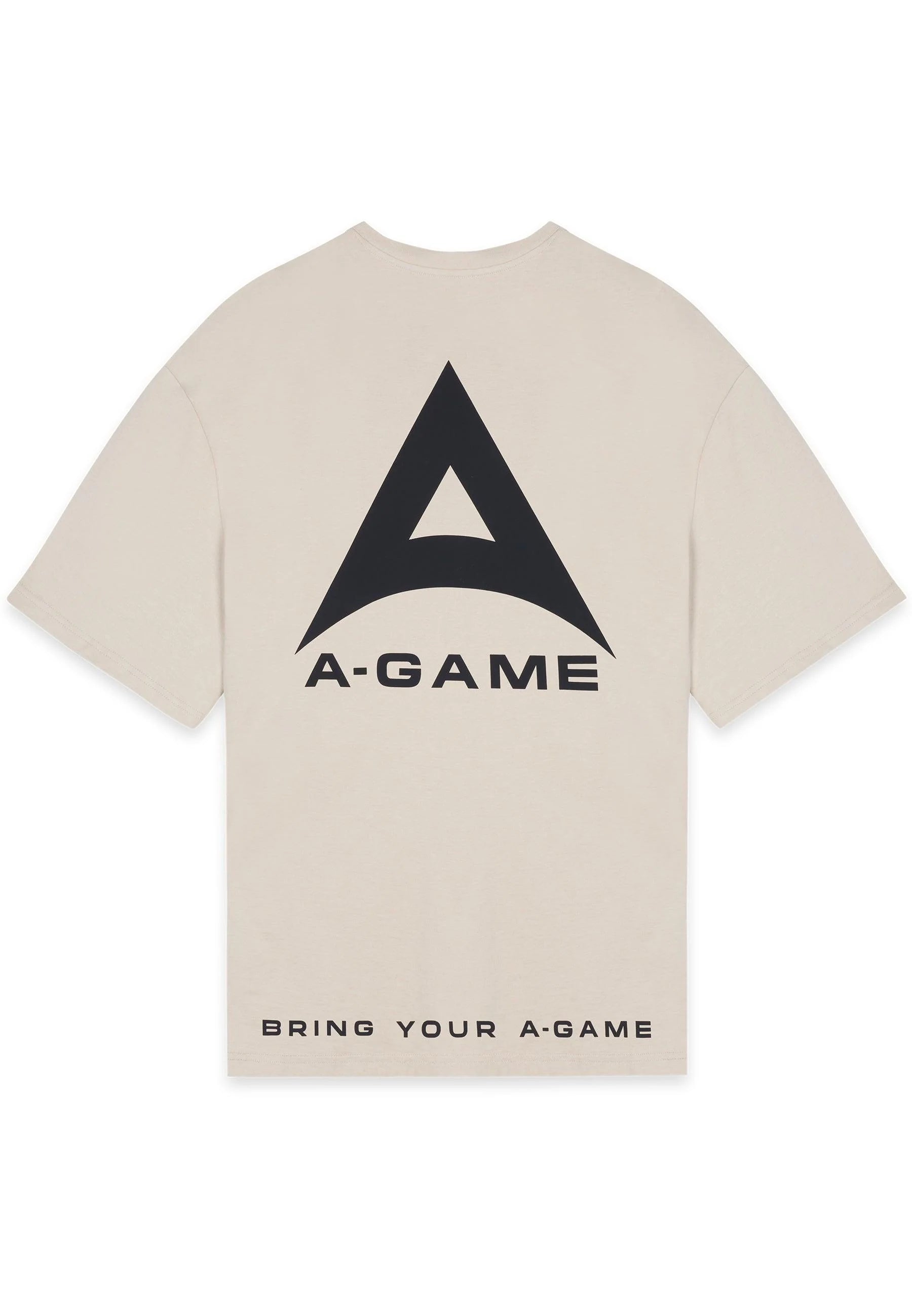 MENS A-GAME LOGO GRAPHIC RELAXED T-SHIRT in beige.