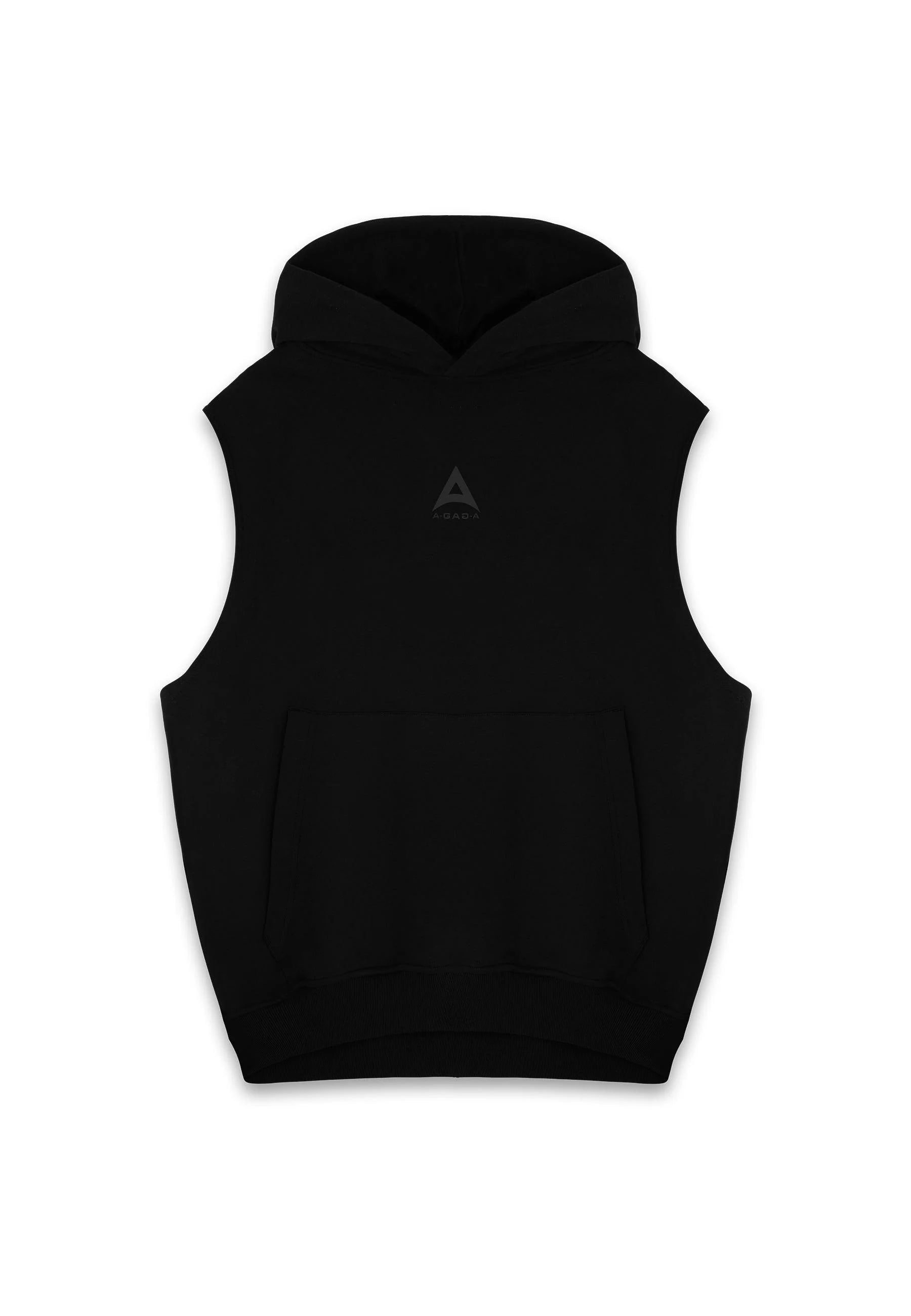 MENS A-GAME LOGO GRAPHIC SLEEVELESS HOODIE in pure black.
