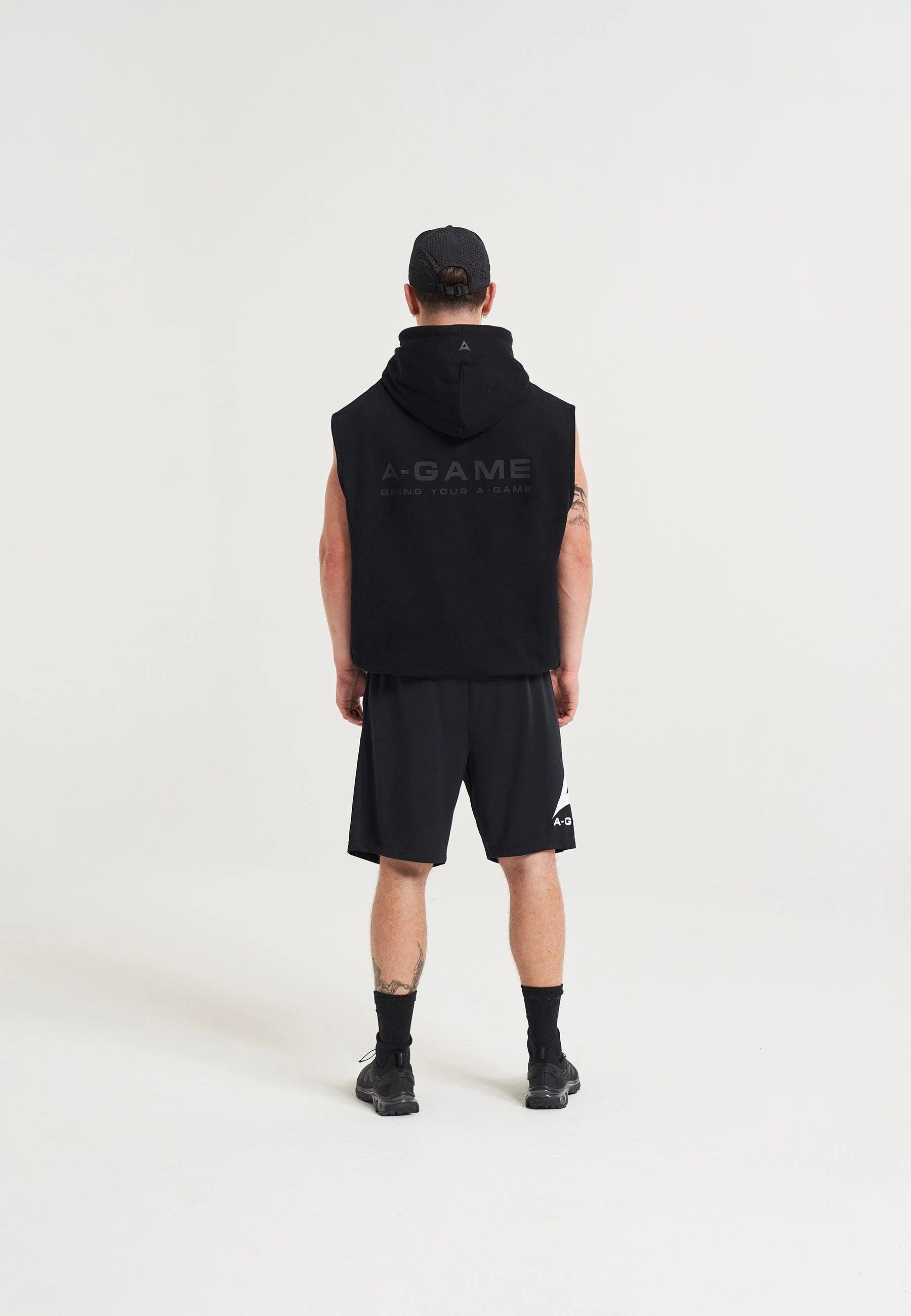 MENS A-GAME LOGO GRAPHIC SLEEVELESS HOODIE - BLACK