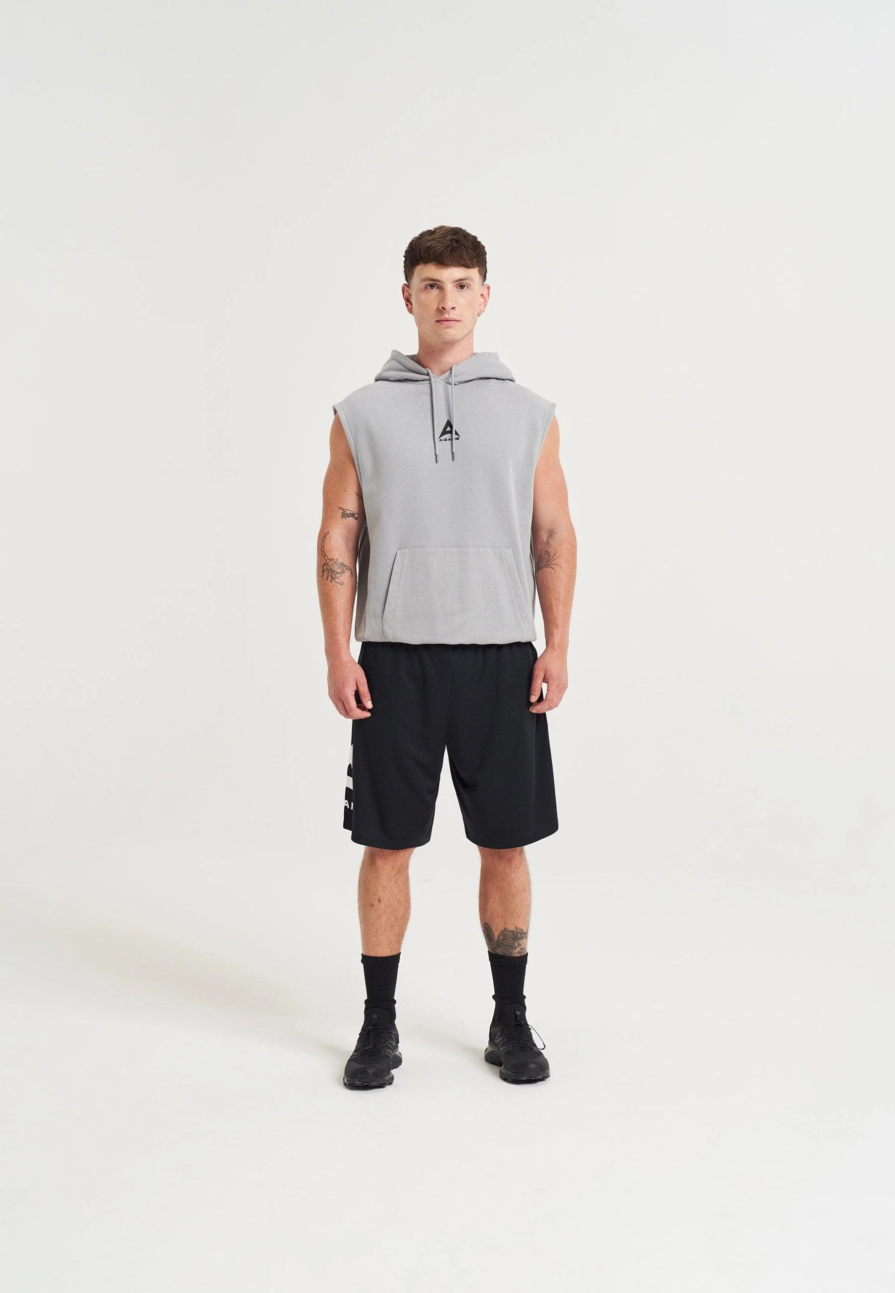 MENS A-GAME LOGO GRAPHIC SLEEVELESS HOODIE in steel grey.