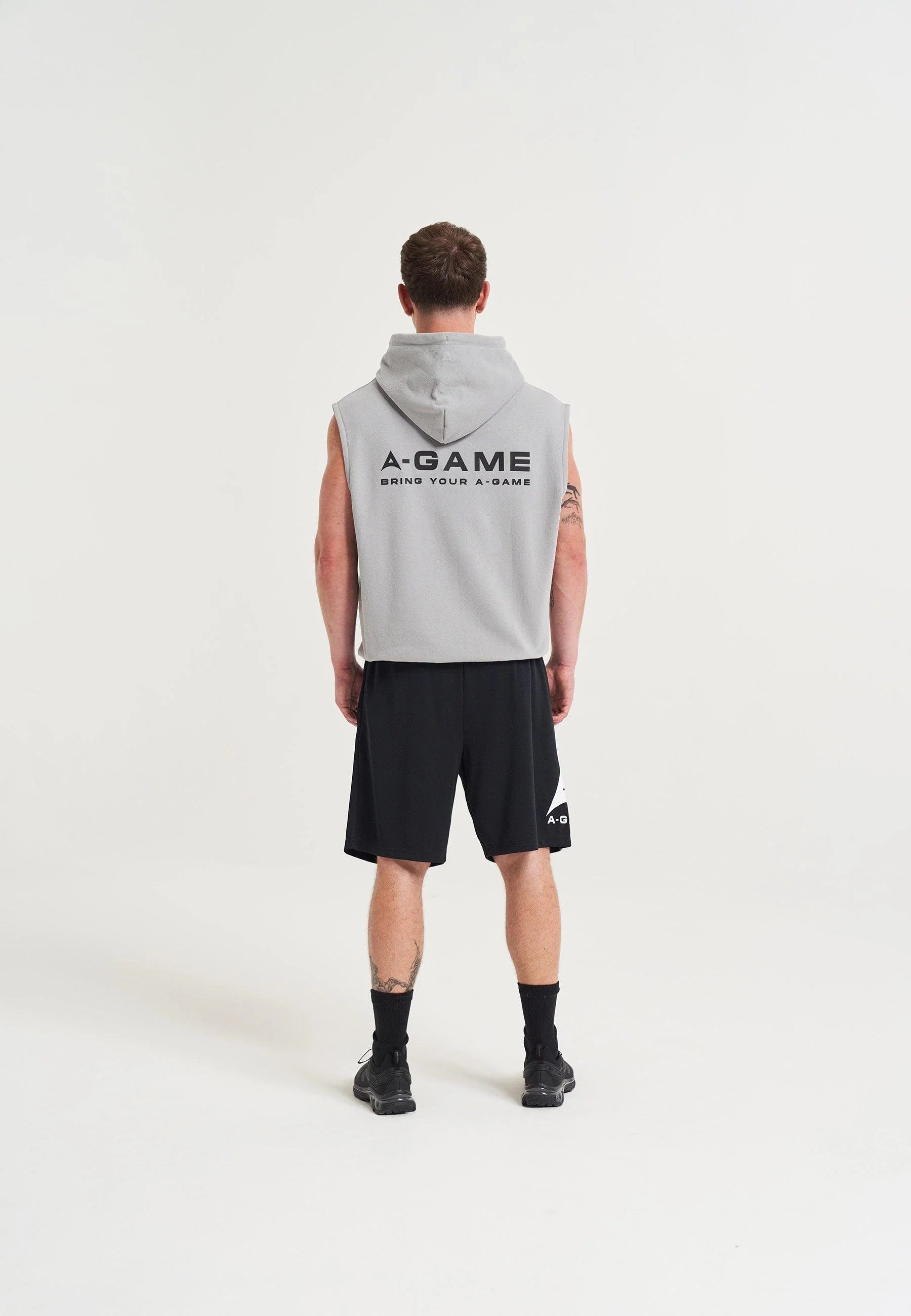 MENS A-GAME LOGO GRAPHIC SLEEVELESS HOODIE - STEEL GREY