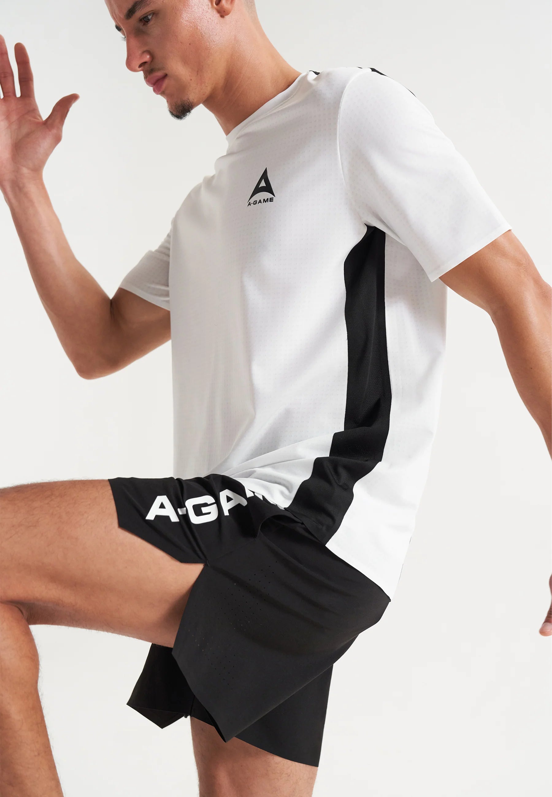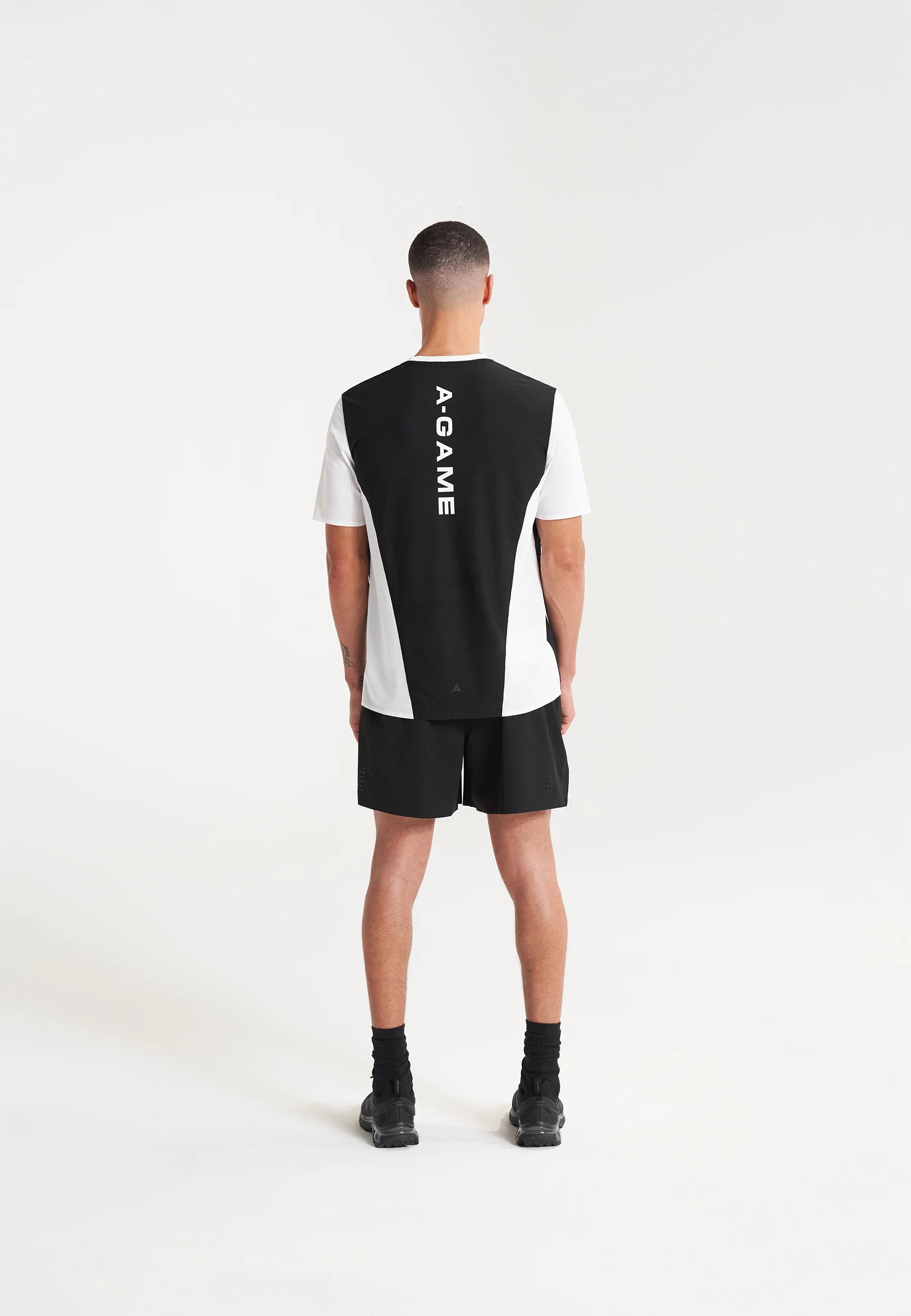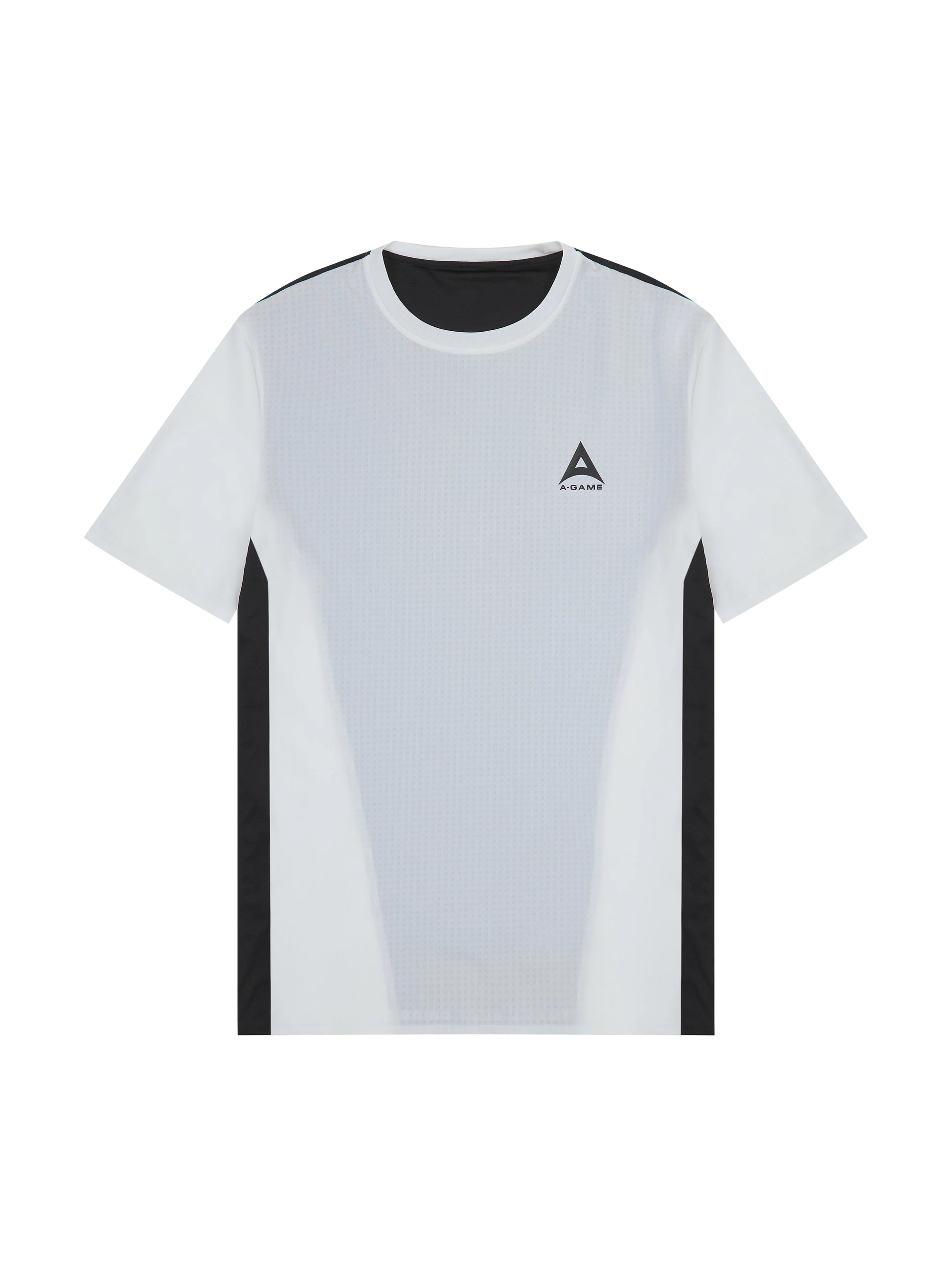 MENS A-GAME PANELLED TRAINING TSHIRT in white and black.