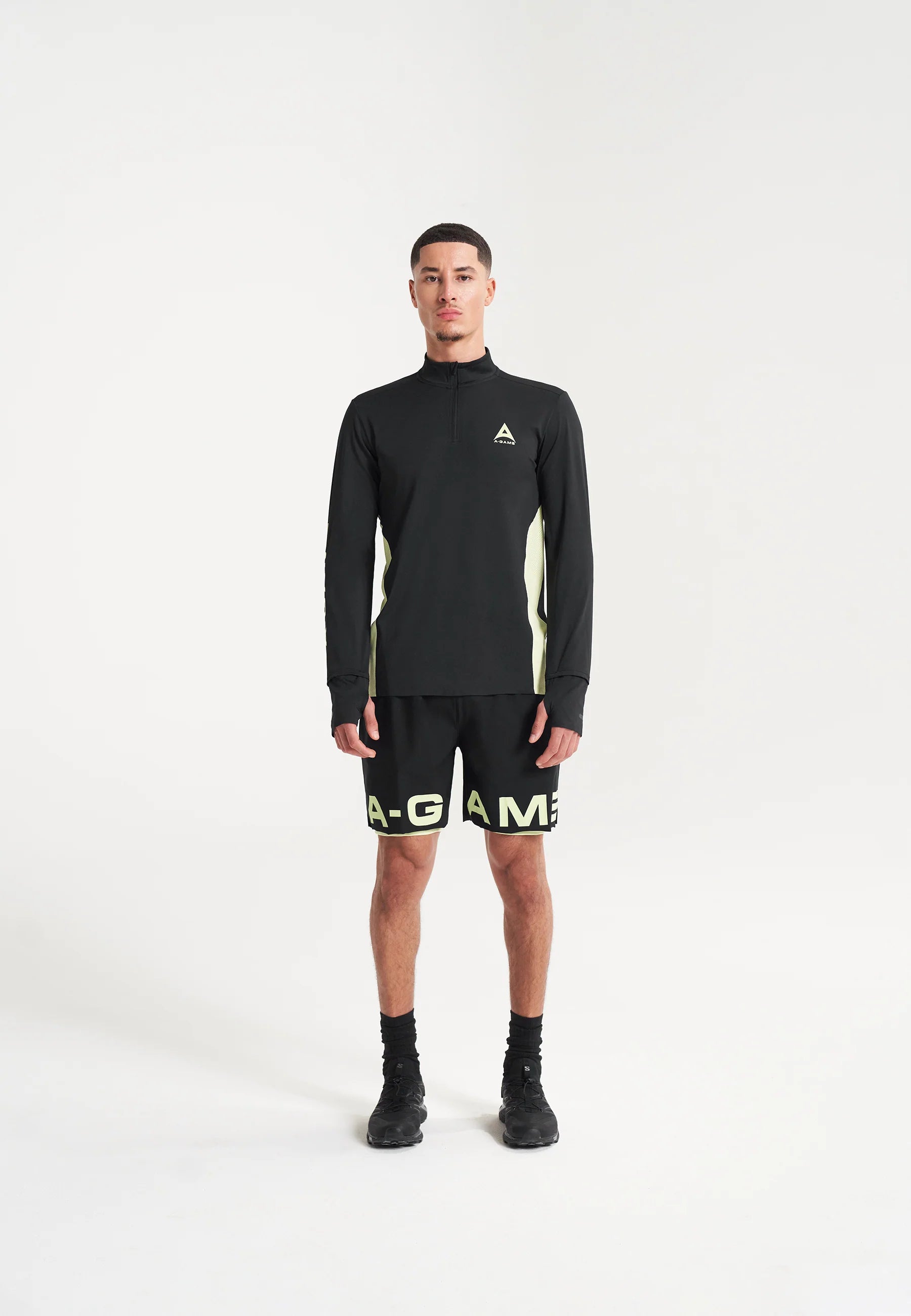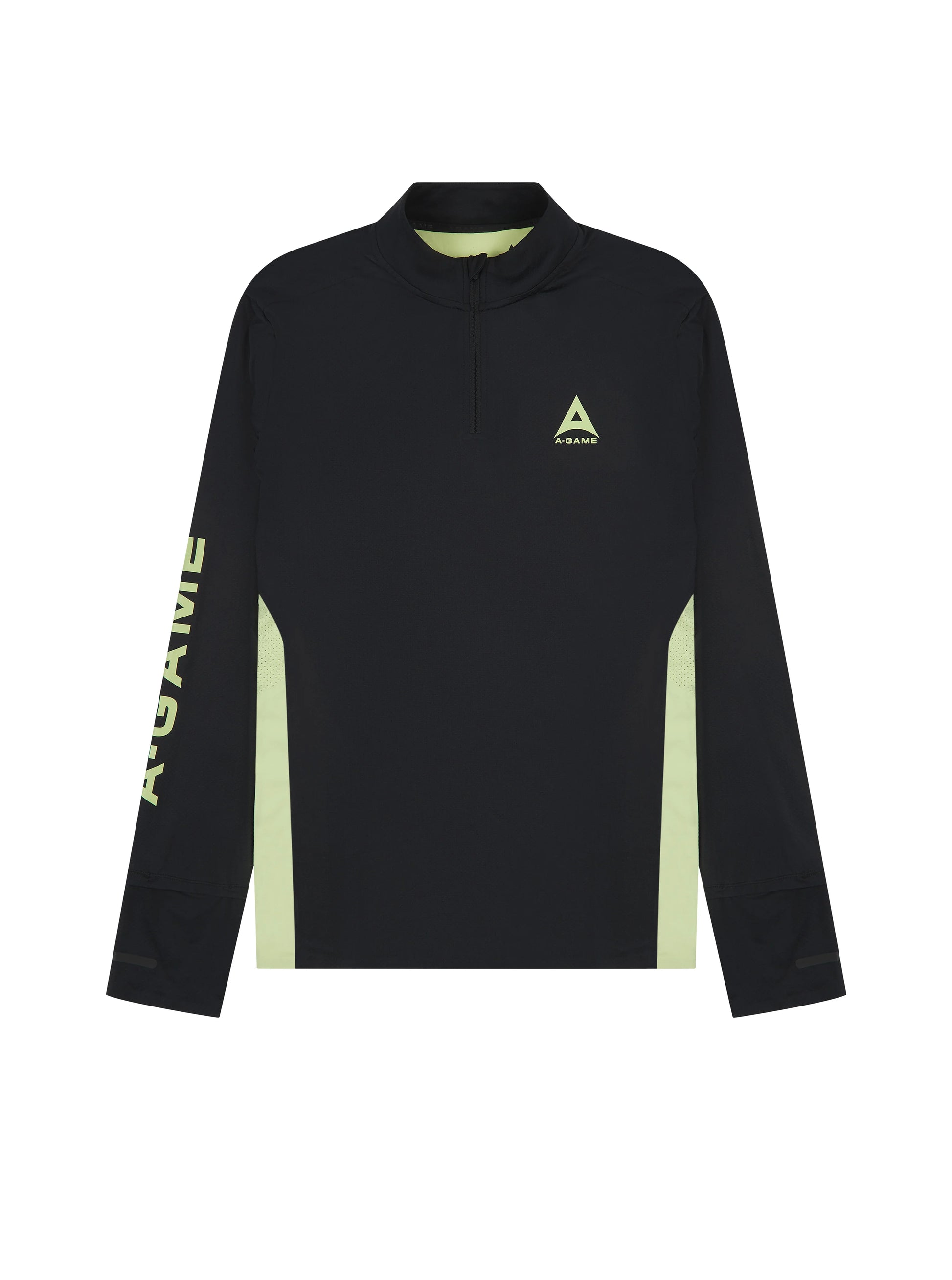 MENS A-GAME PERFORMANCE LONG SLEEVE TRAINING TOP in black and lime.