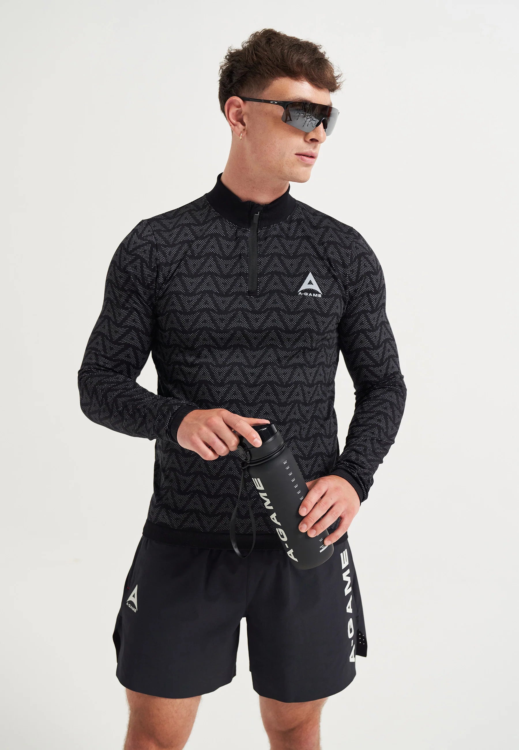 MENS A-GAME SEAMLESS LOGO TRAINING LONG SLEEVE TOP - BLACK