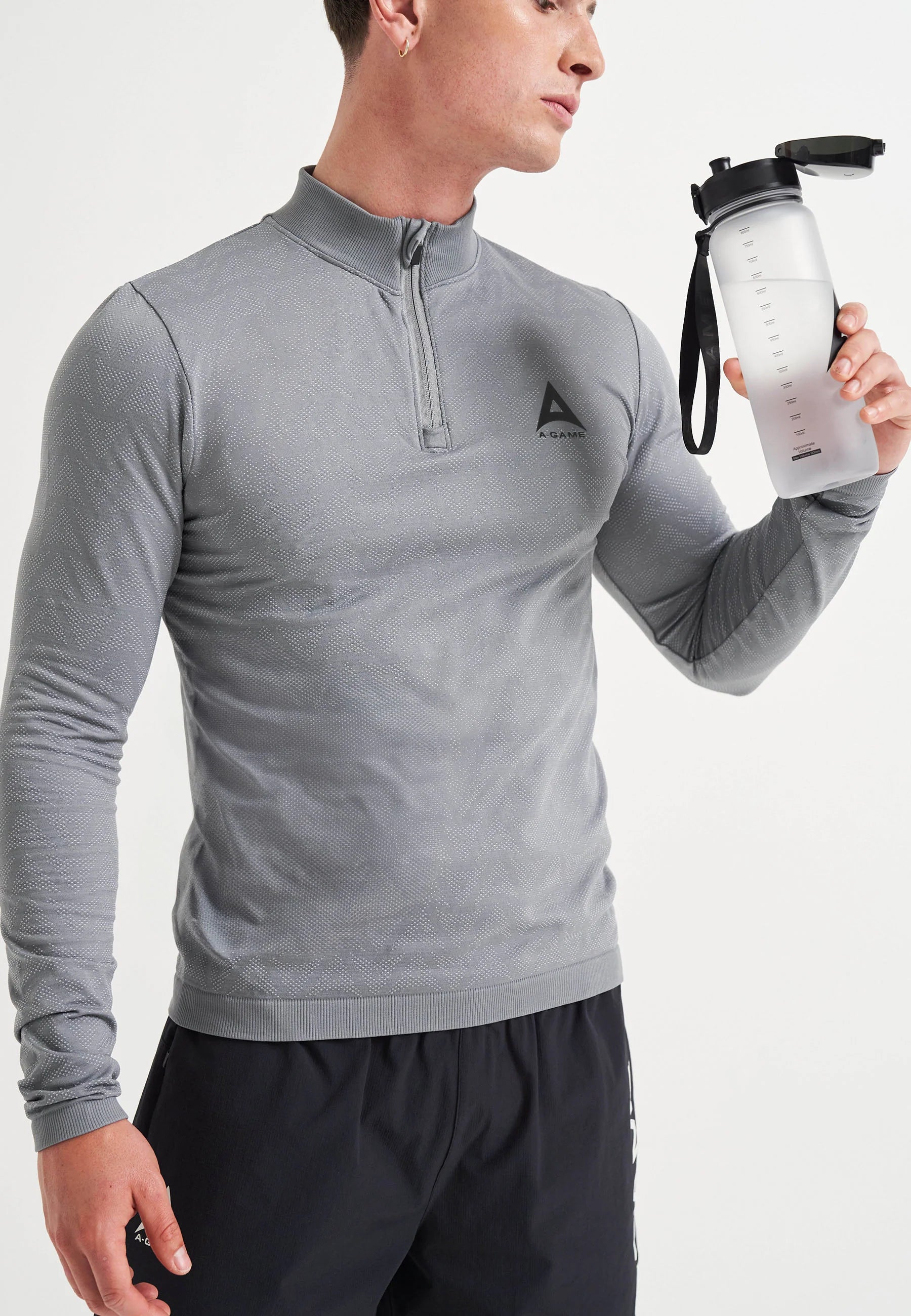 MENS A-GAME SEAMLESS LOGO TRAINING LONG SLEEVE TOP - STEEL GREY