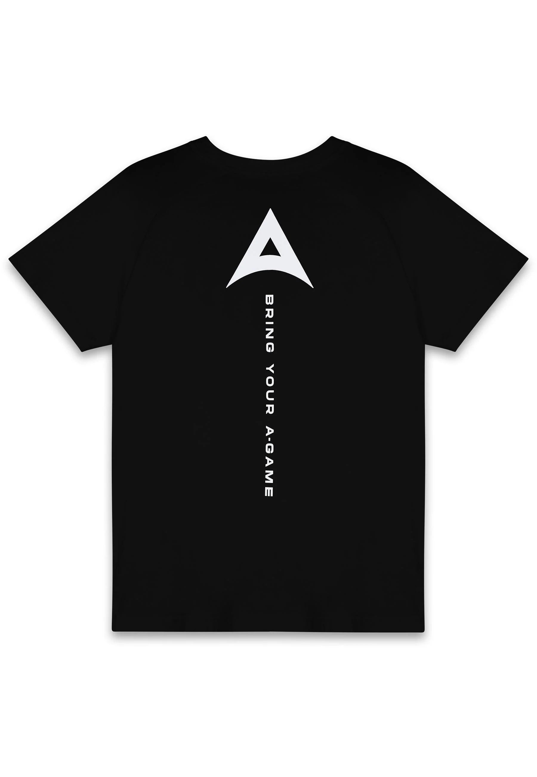 MENS BRING YOUR A-GAME GRAPHIC LOGO T-SHIRT in pure black.