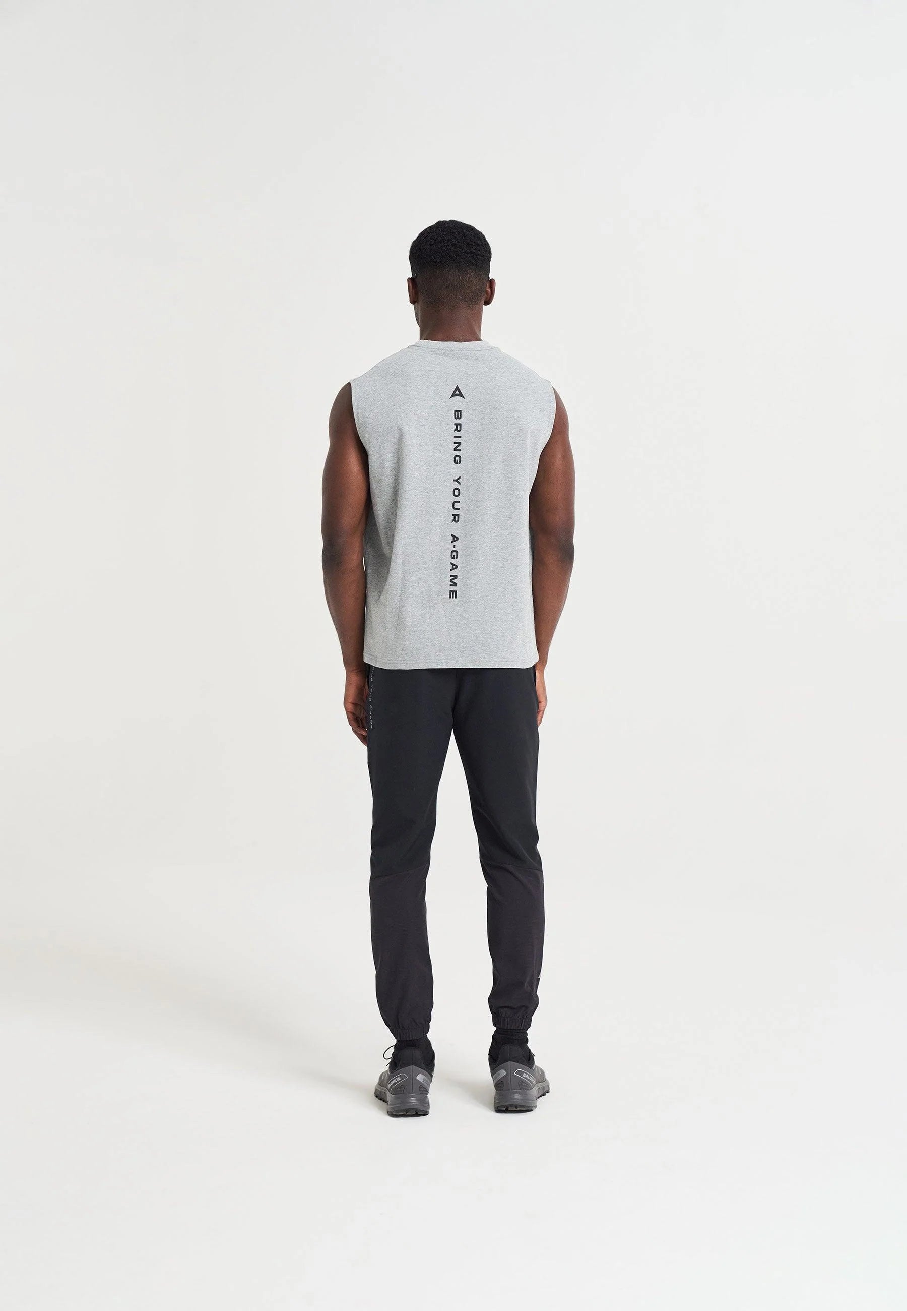MENS BRING YOUR A-GAME GRAPHIC SLEEVELESS T-SHIRT in grey marl.