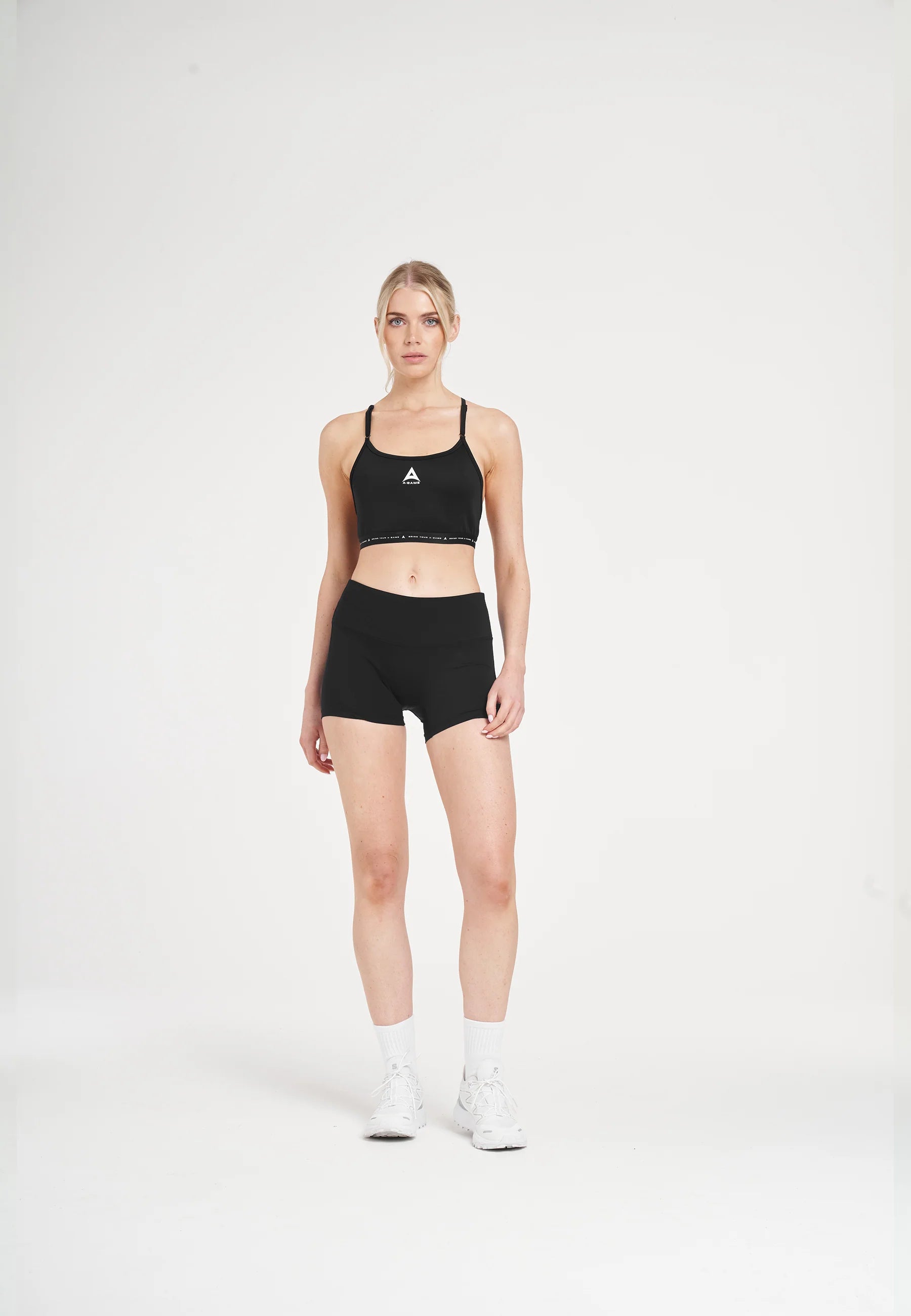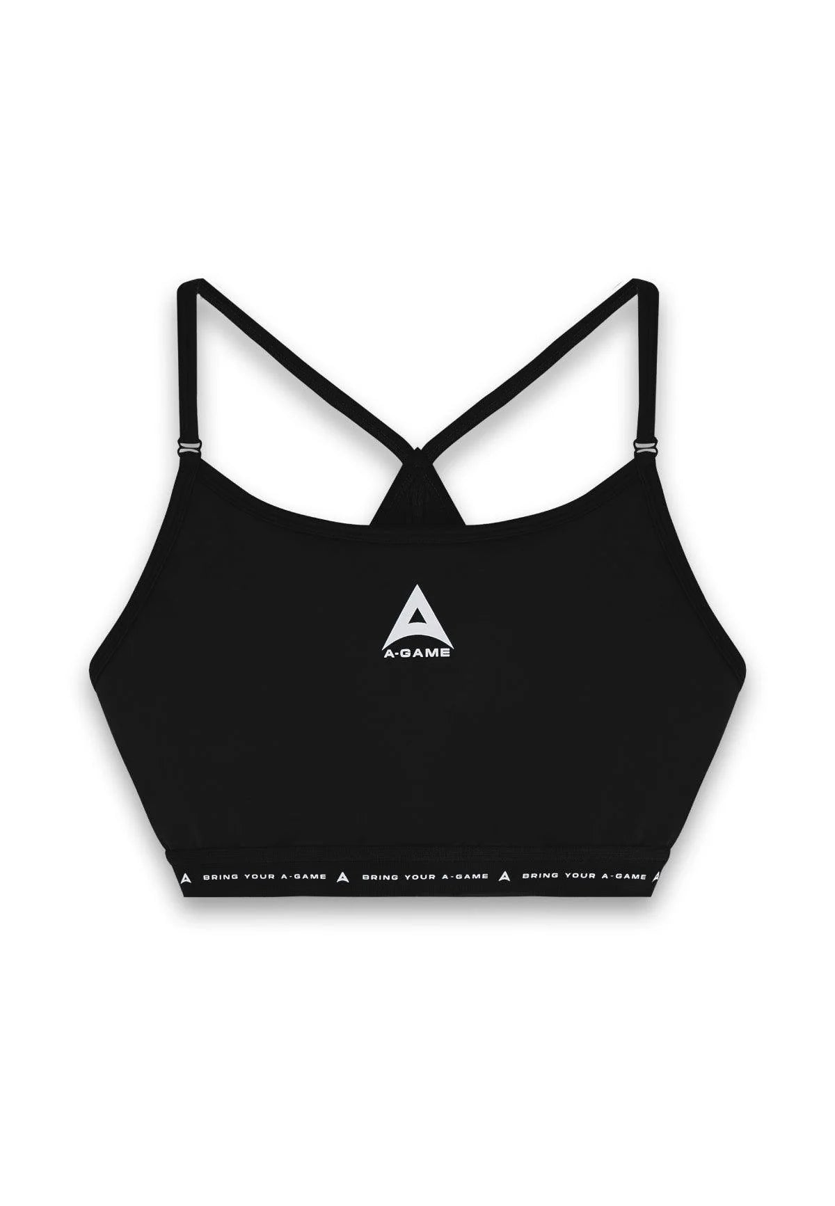 A-GAME ADJUSTABLE YOGA SPORTS BRA in pure black.