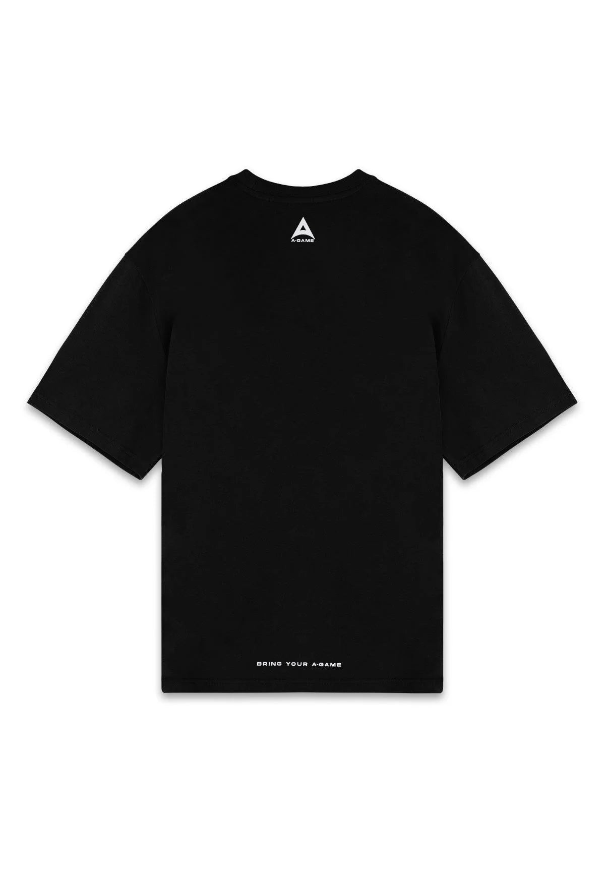 A-GAME CHENILLE LOGO RELAXED T-SHIRT in pure black.
