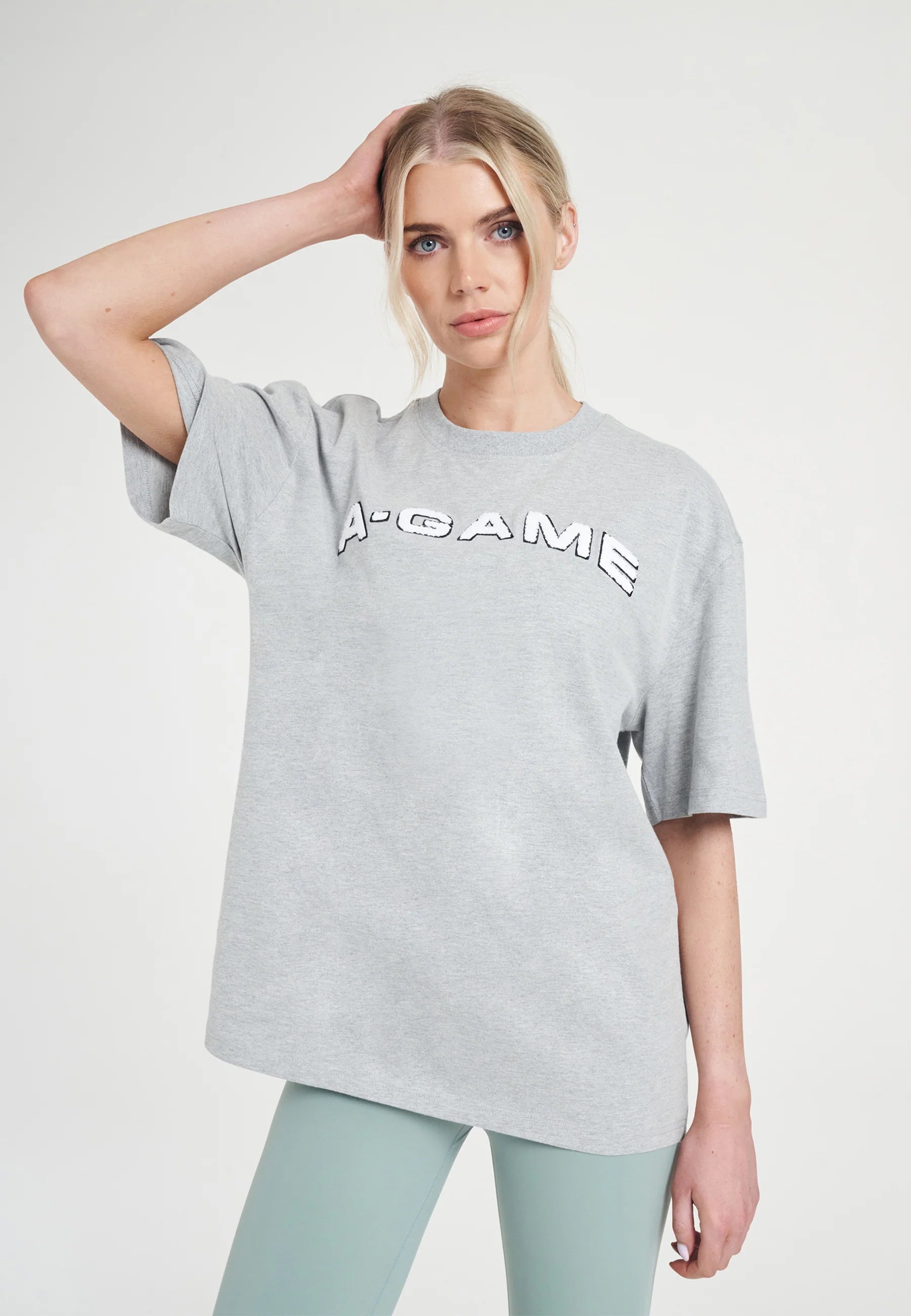 A-GAME CHENILLE LOGO RELAXED T-SHIRT in grey marl.