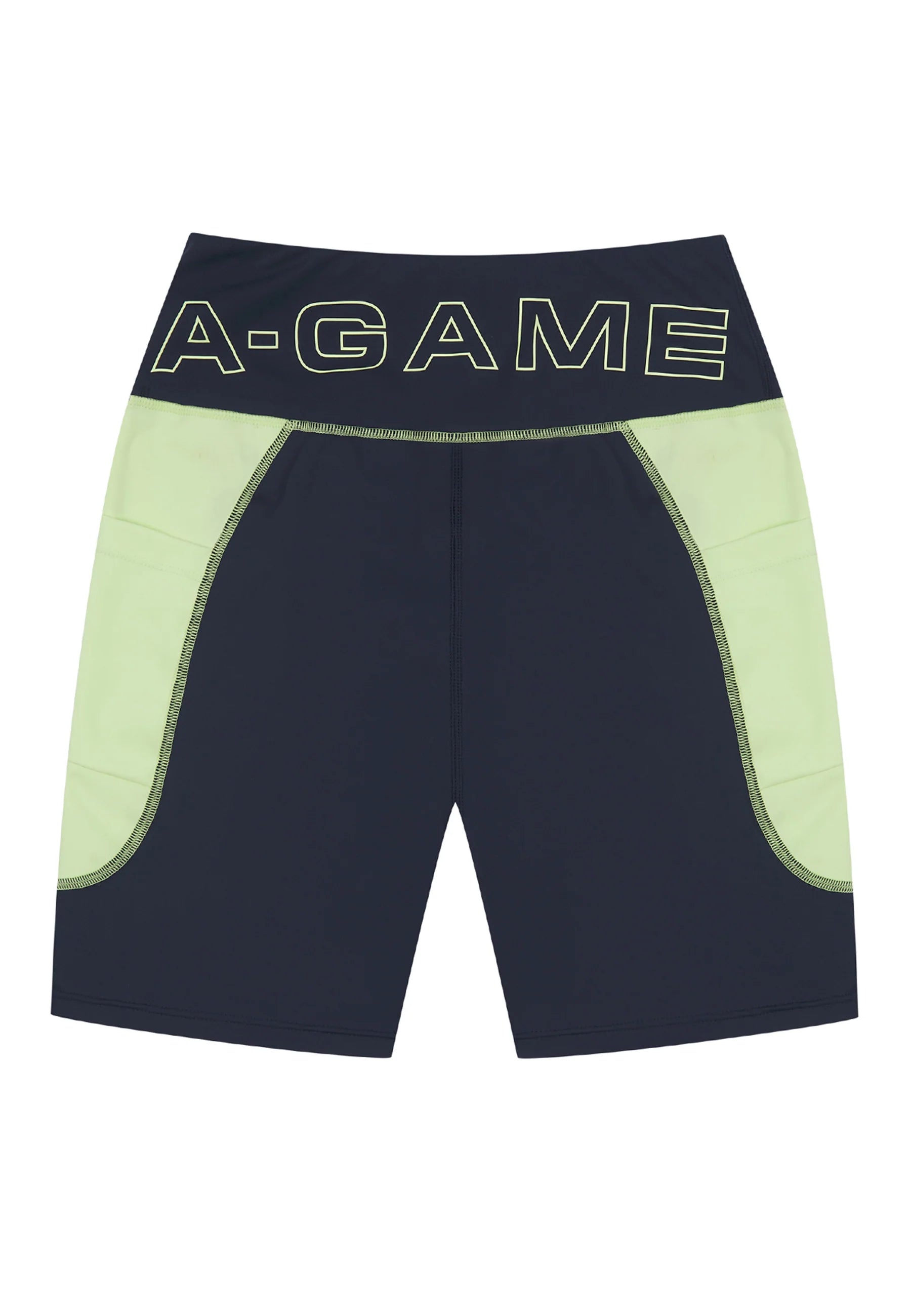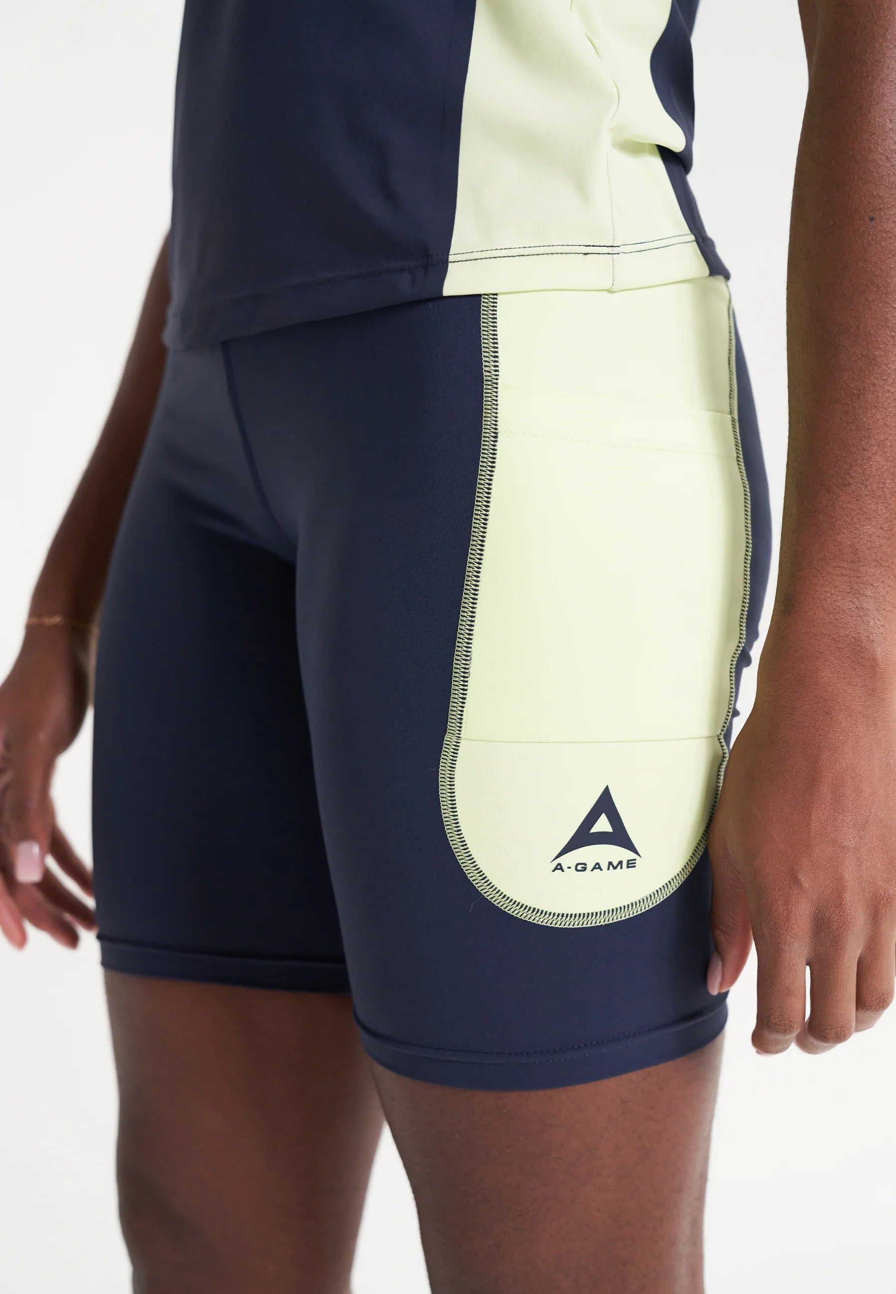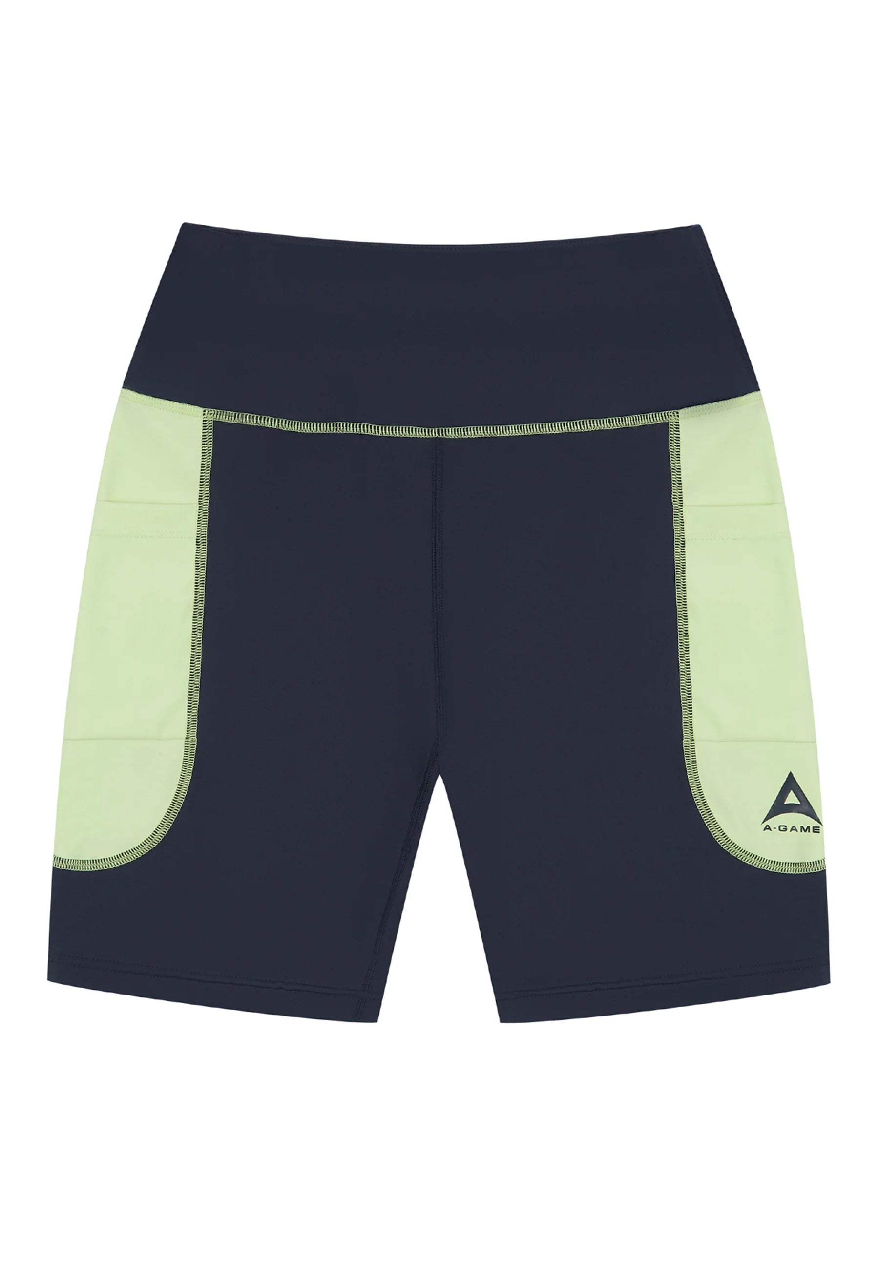 WOMENS A-GAME HIGH RISE BIKER SHORTS - NAVY/LIME
