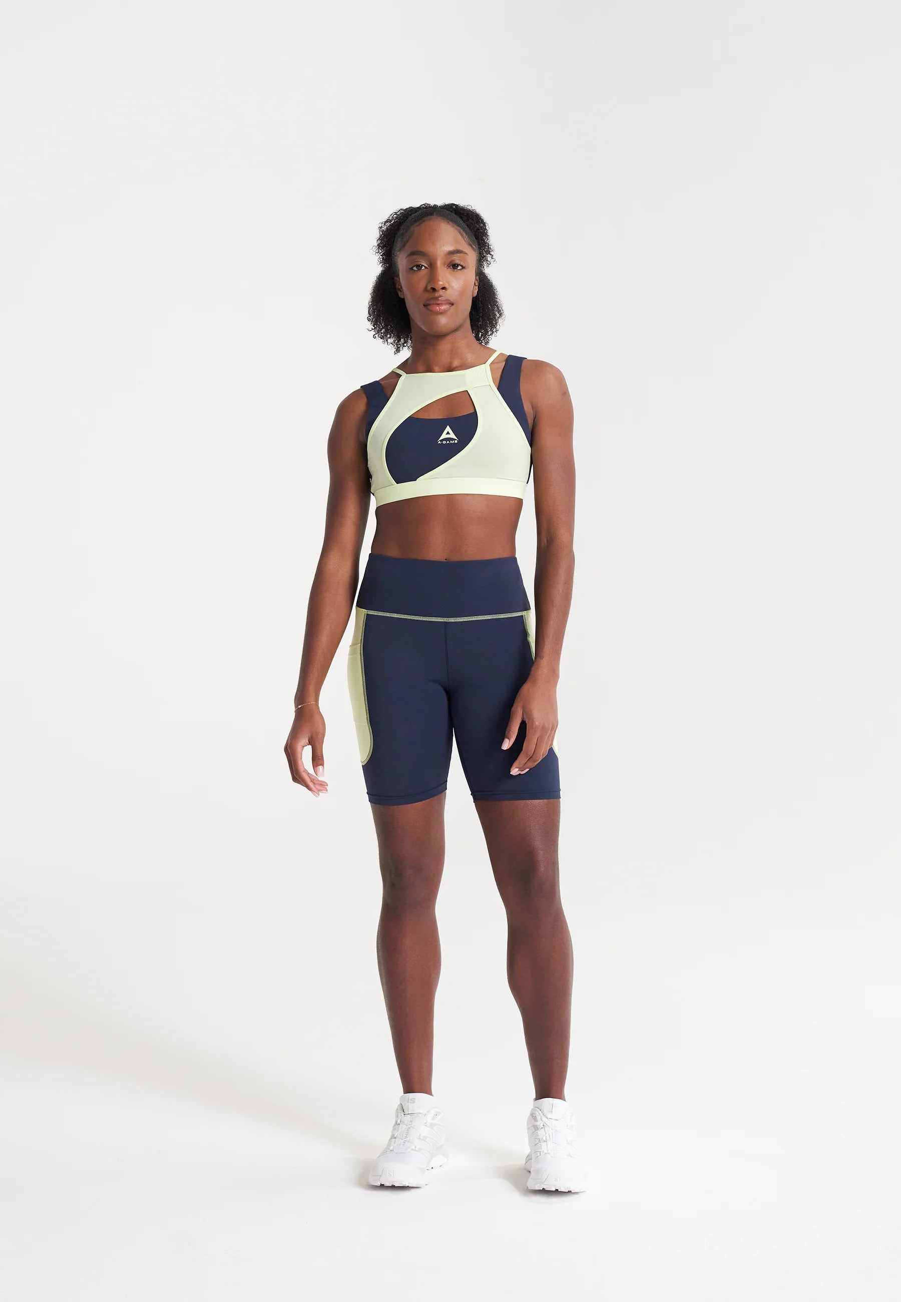 ACTIVEWEAR BIKER SHORTS in navy and lime.