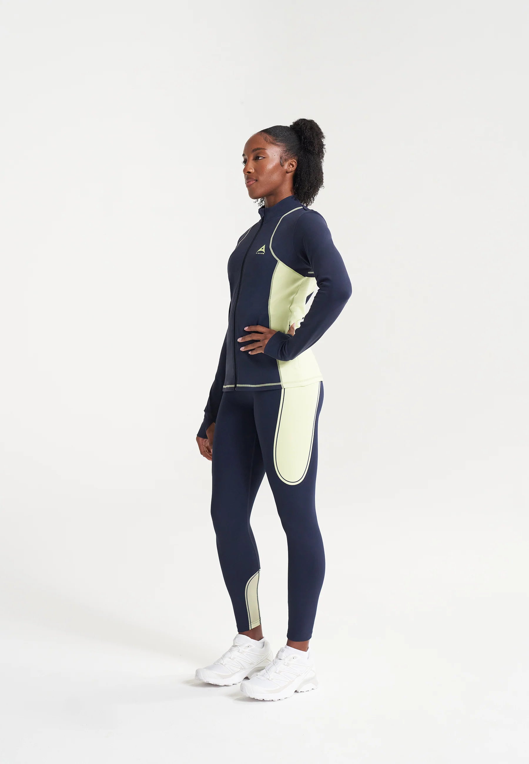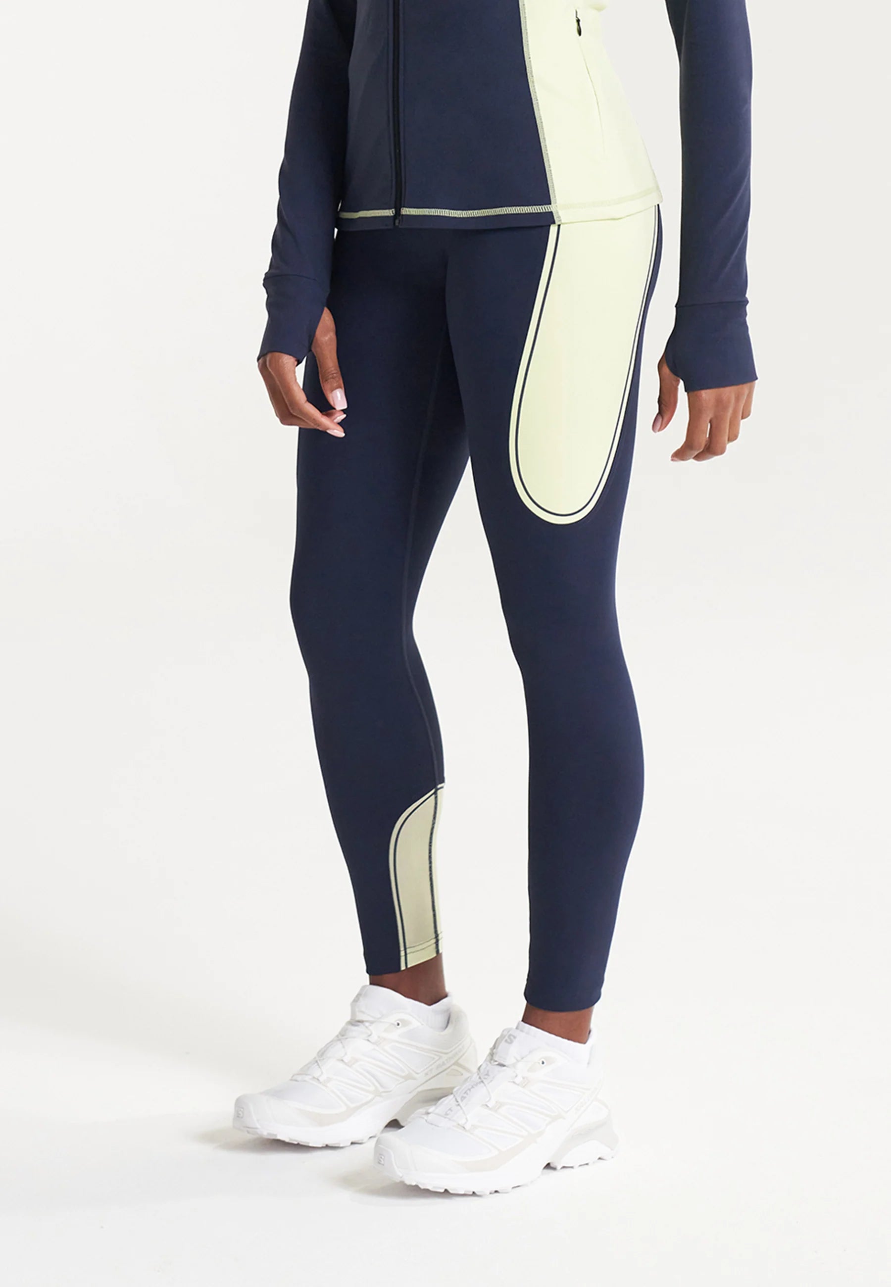 ACTIVEWEAR MUSCLE LEGGINGS in navy and lime.