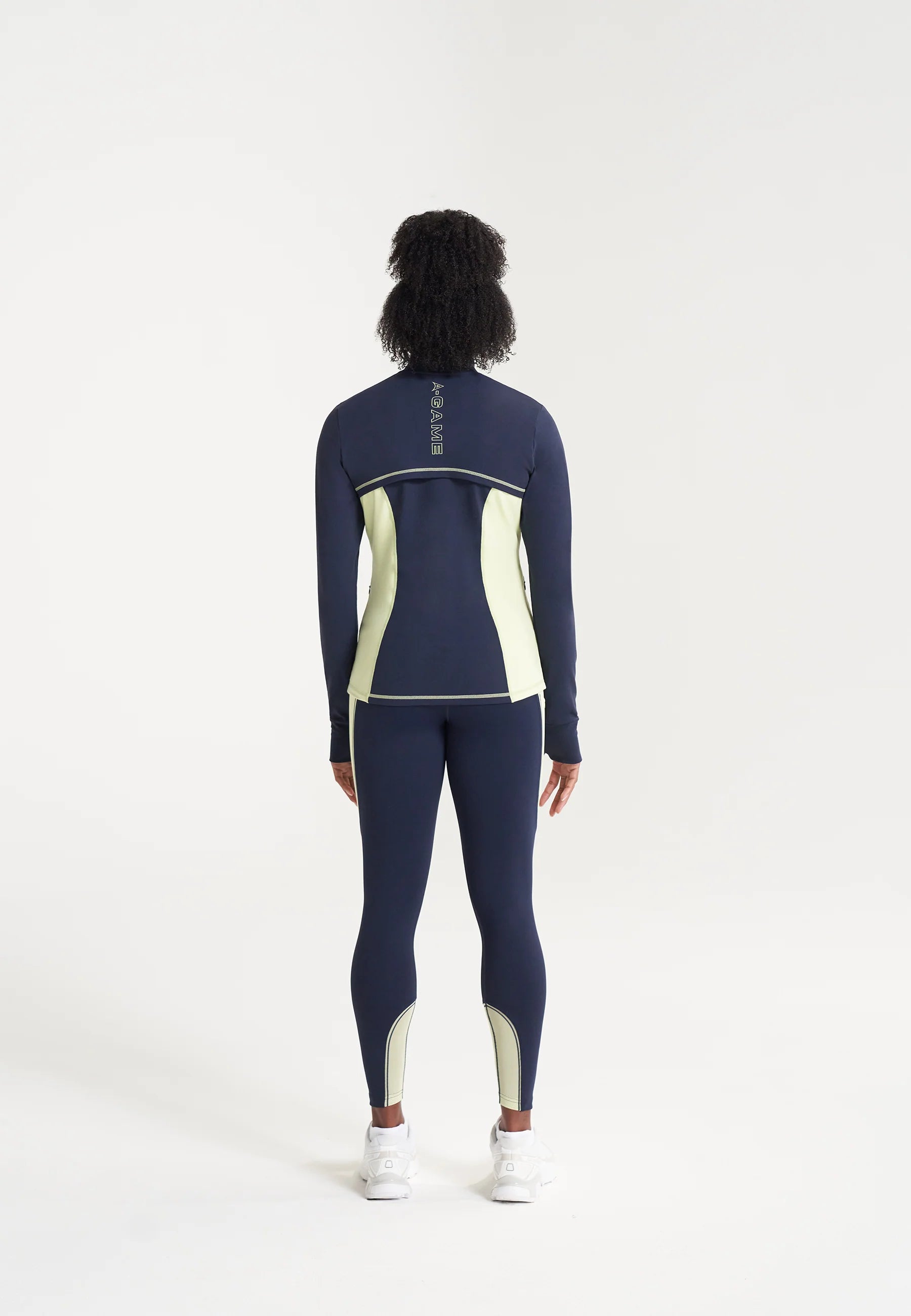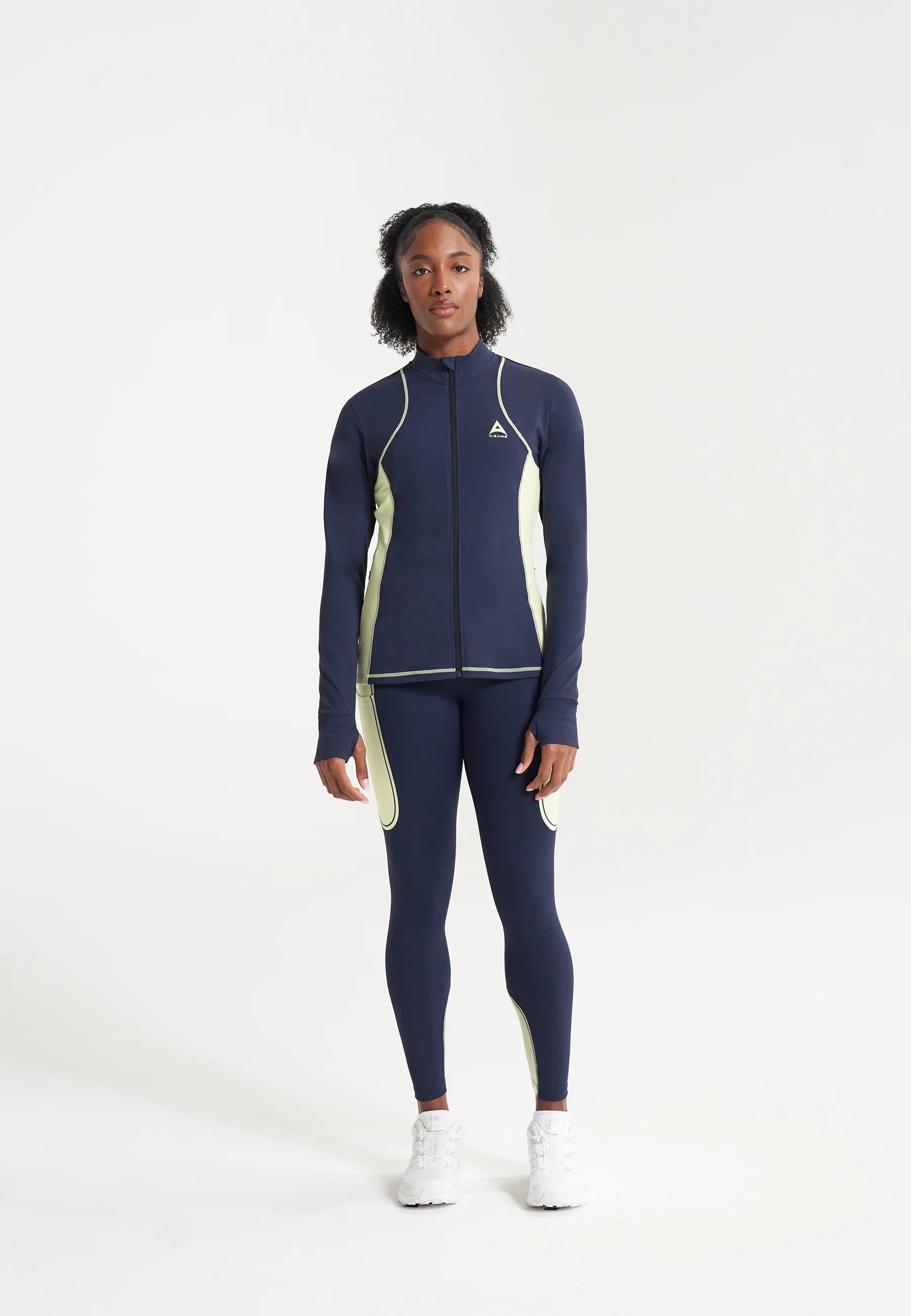 WOMENS A-GAME REFLECTIVE RUNNING LEGGINGS - NAVY/LIME