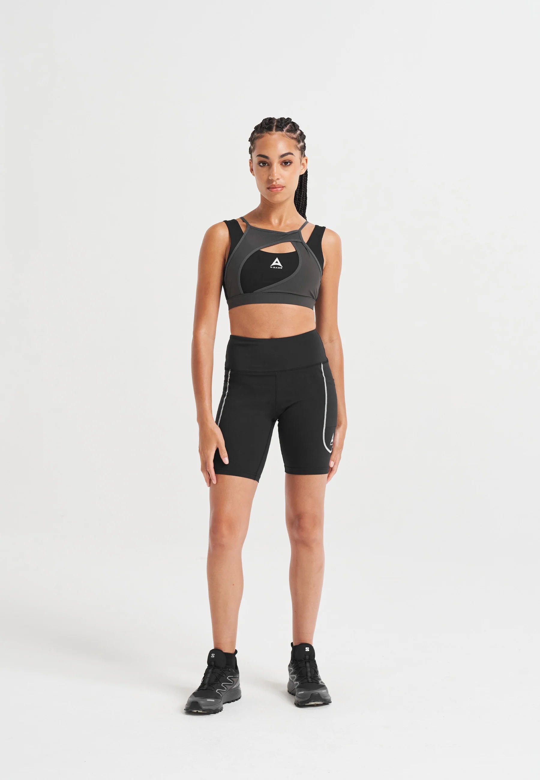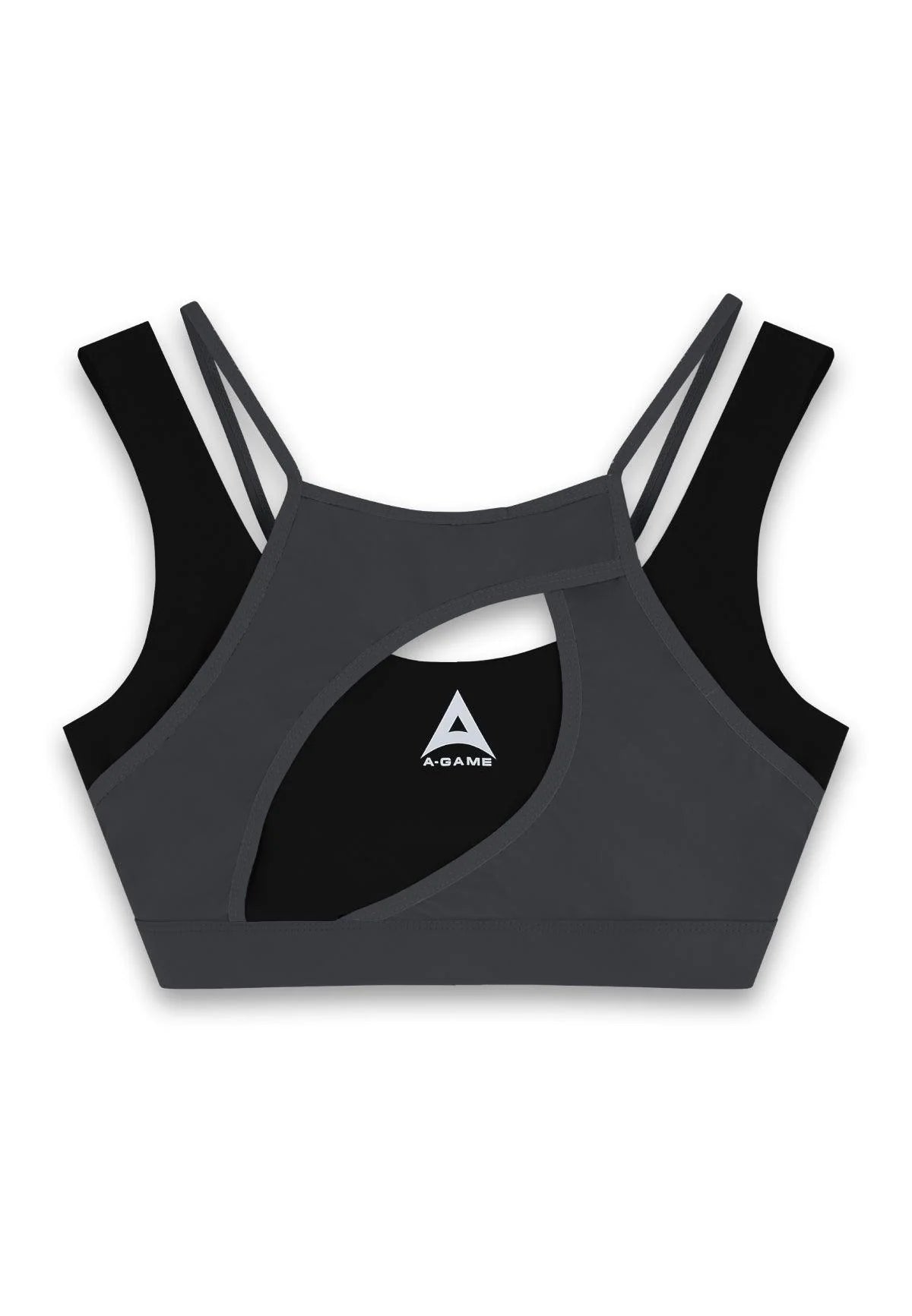 WOMENS A-GAME LAYERED SPORTS BRA - BLACK/ASPHALT