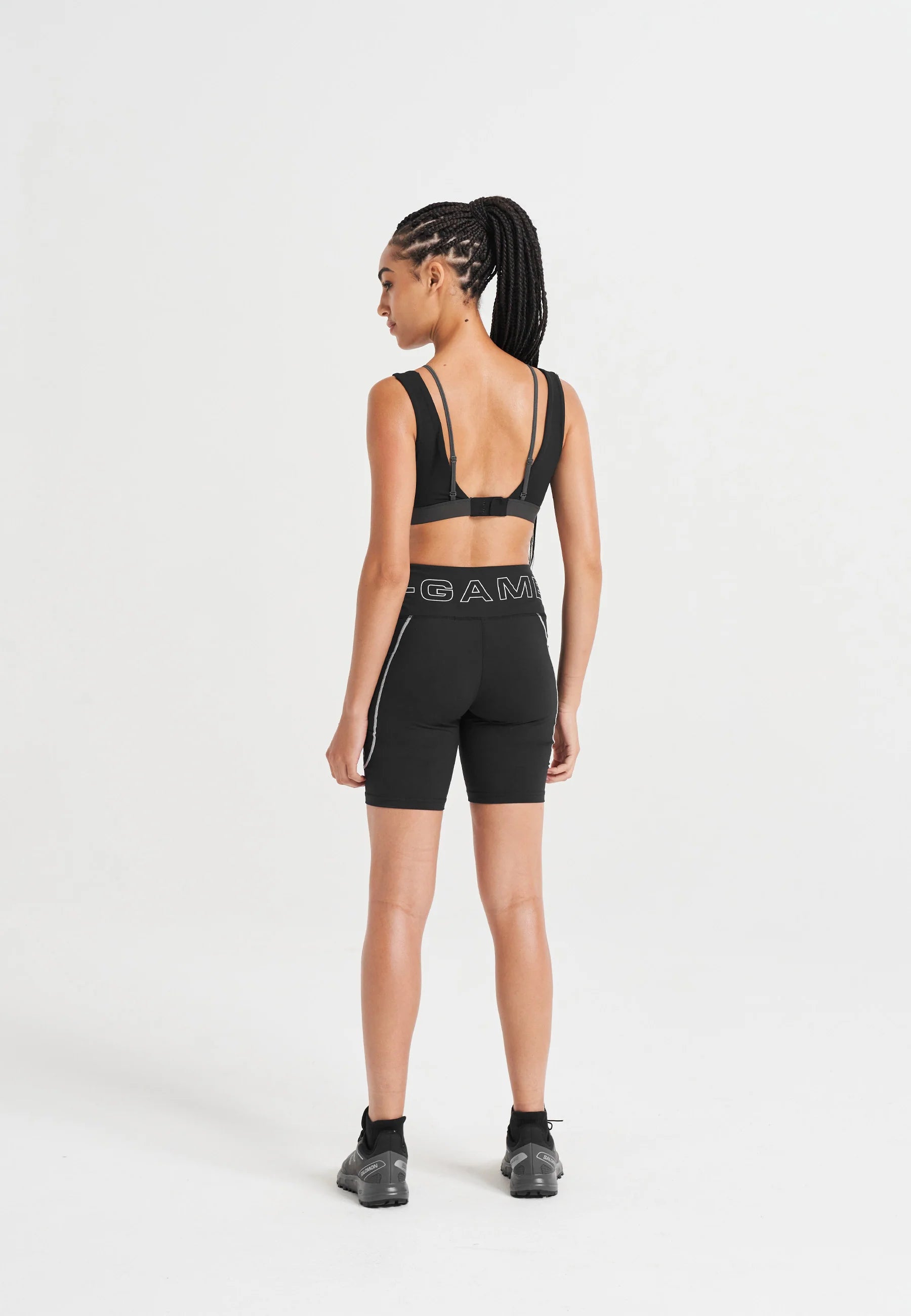 LAYERED SUPPORT SPORTS BRA in black and asphalt.