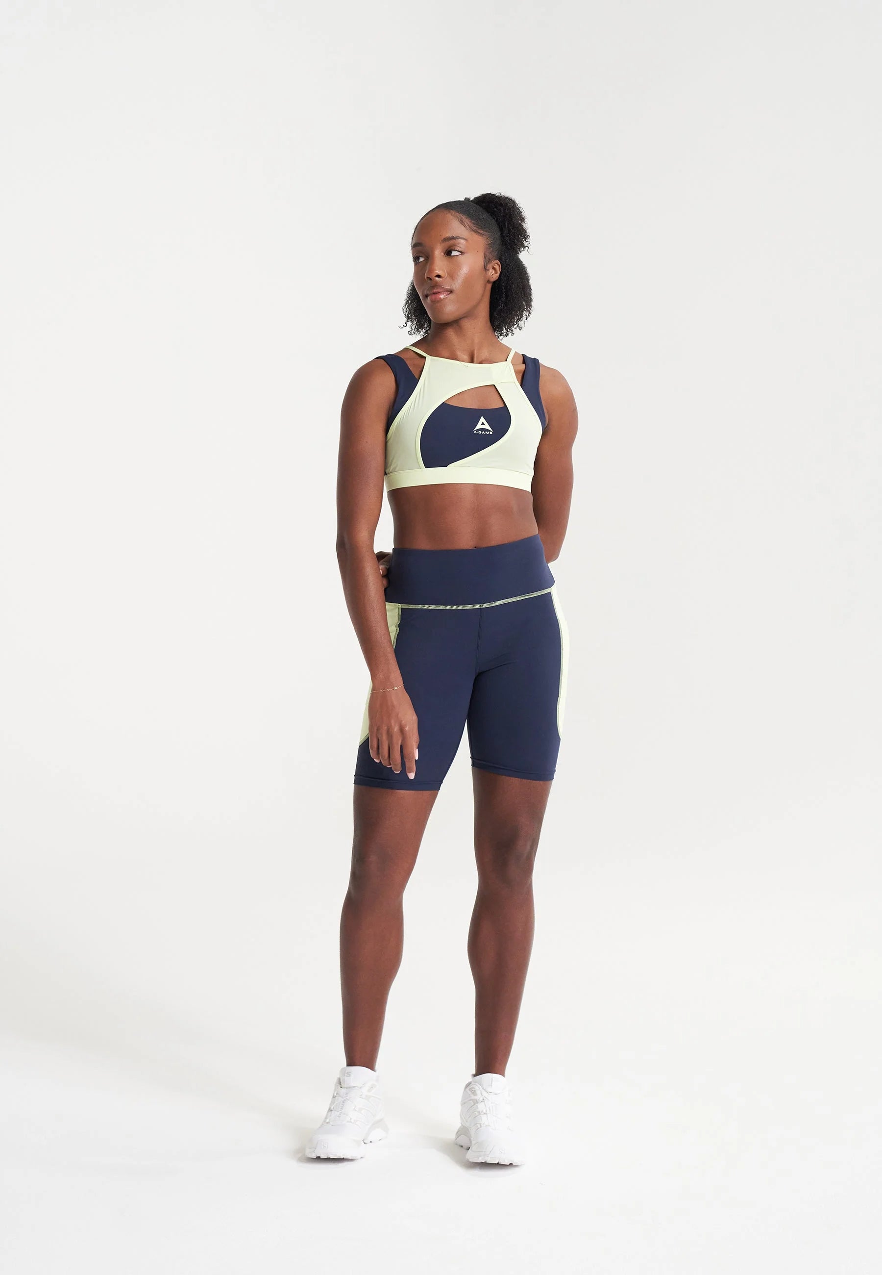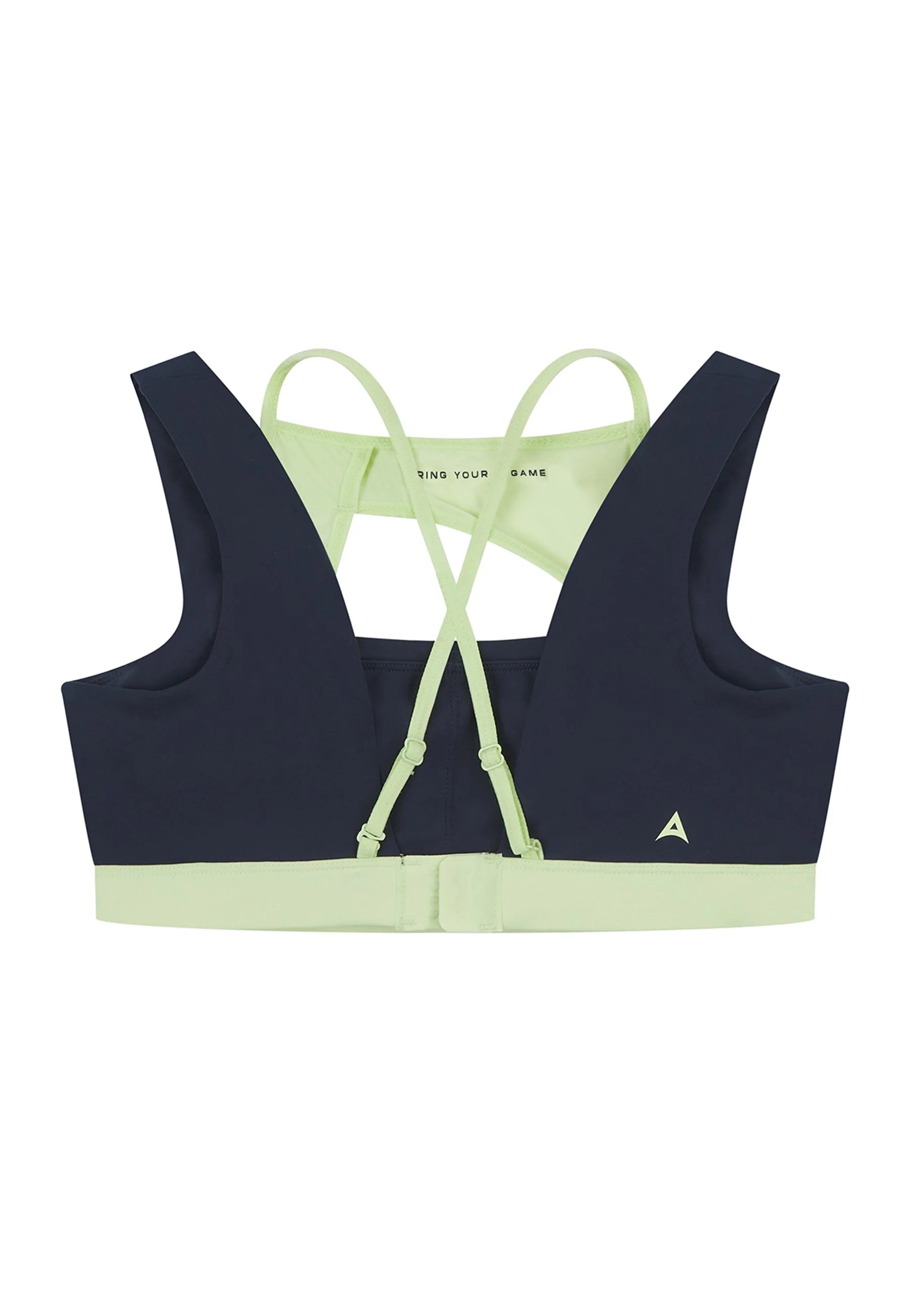LAYERED SUPPORT SPORTS BRA in navy and lime.
