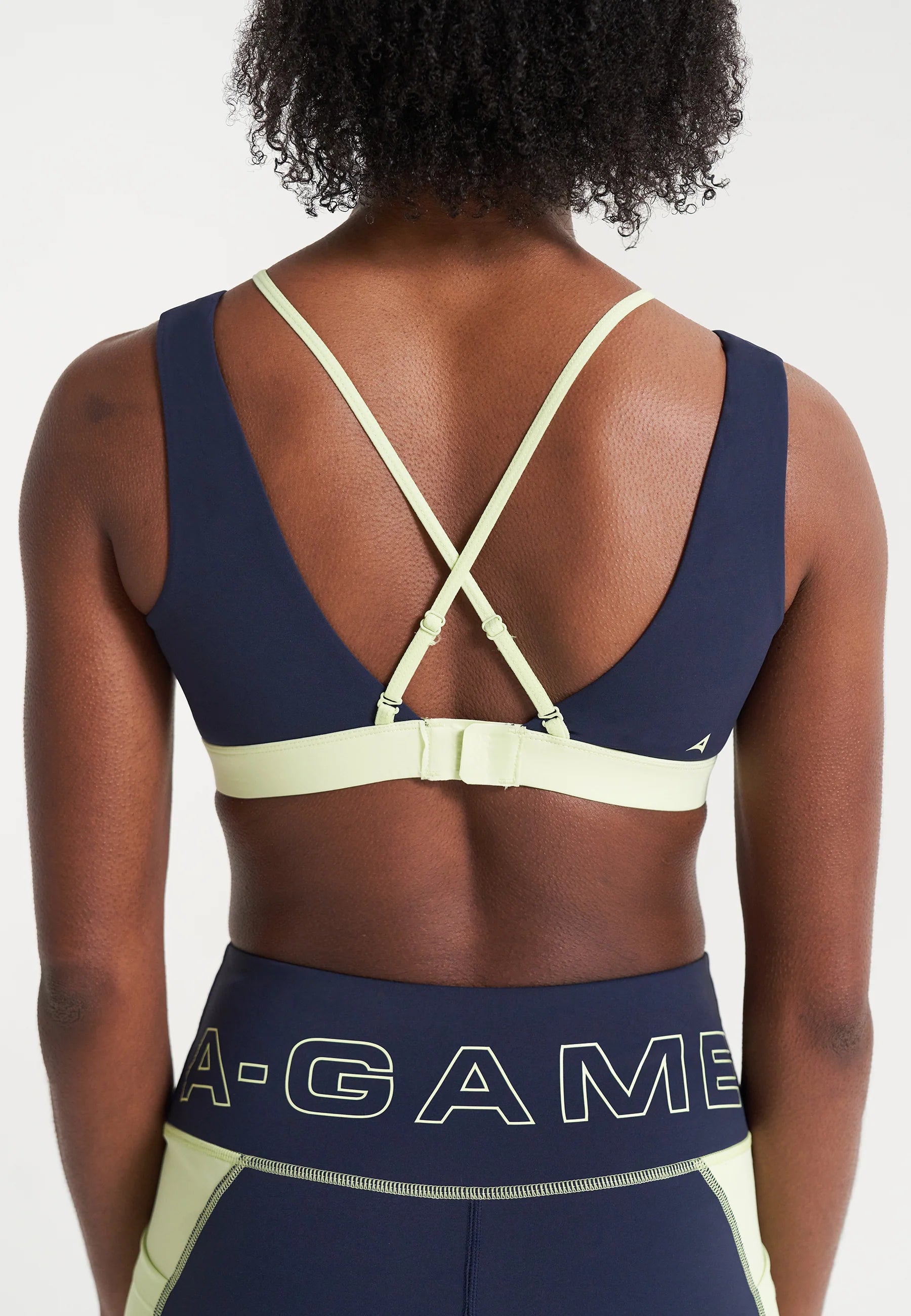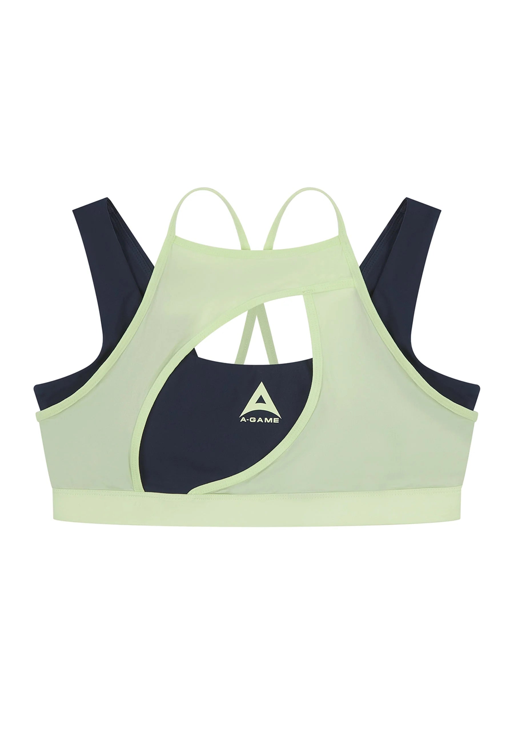 WOMENS A-GAME LAYERED SPORTS BRAS - NAVY/LIME