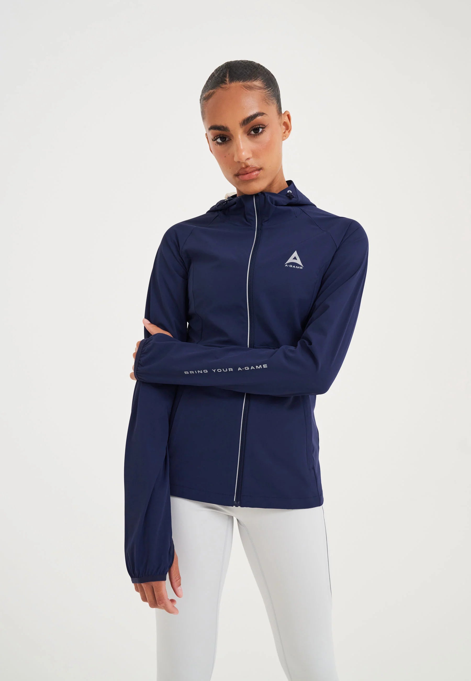WOMENS A-GAME LIGHTWEIGHT FITTED RUNNING JACKET - CROWN BLUE/SILVER