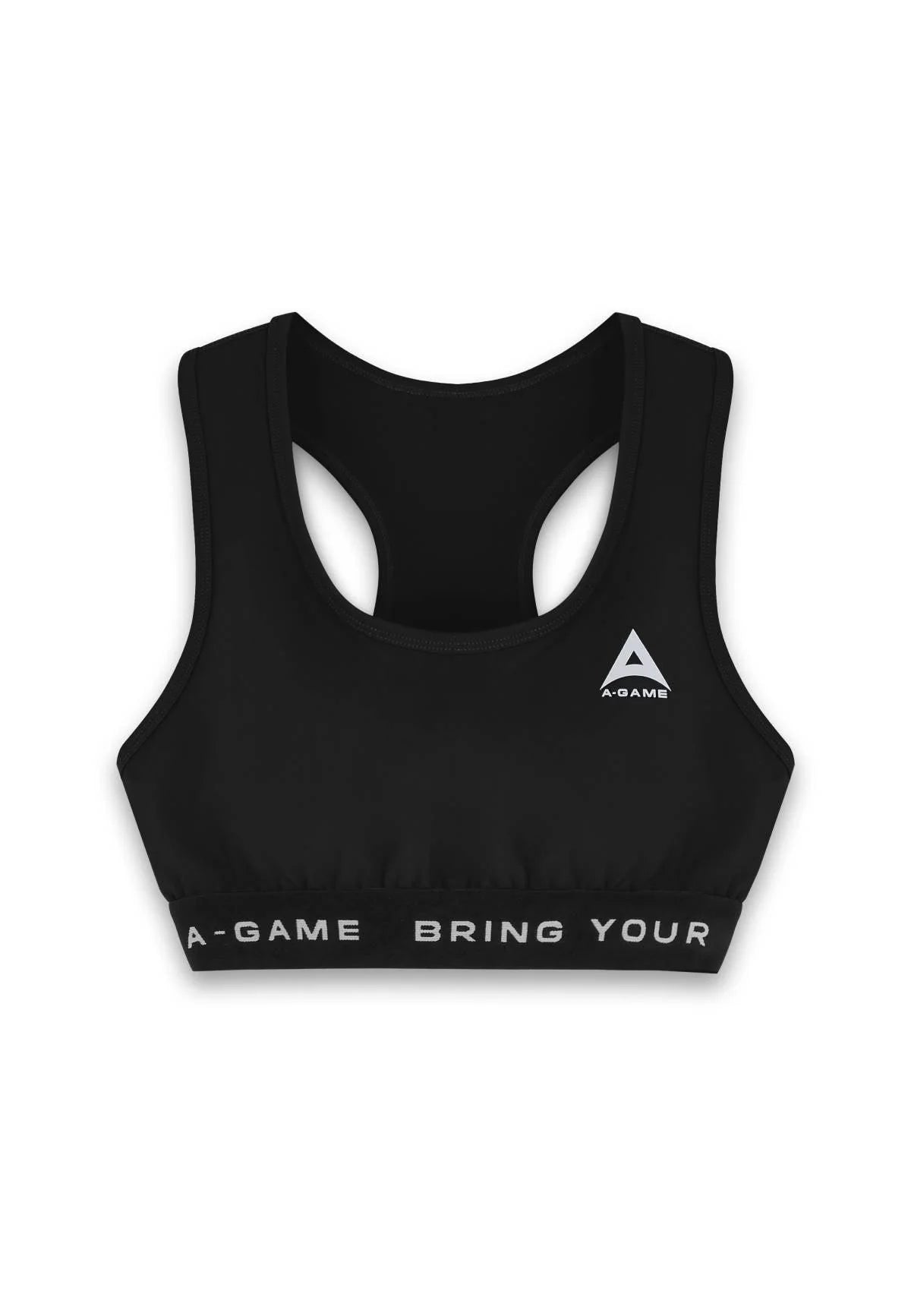 A-GAME LOGO TRAINING BRA in pure black.