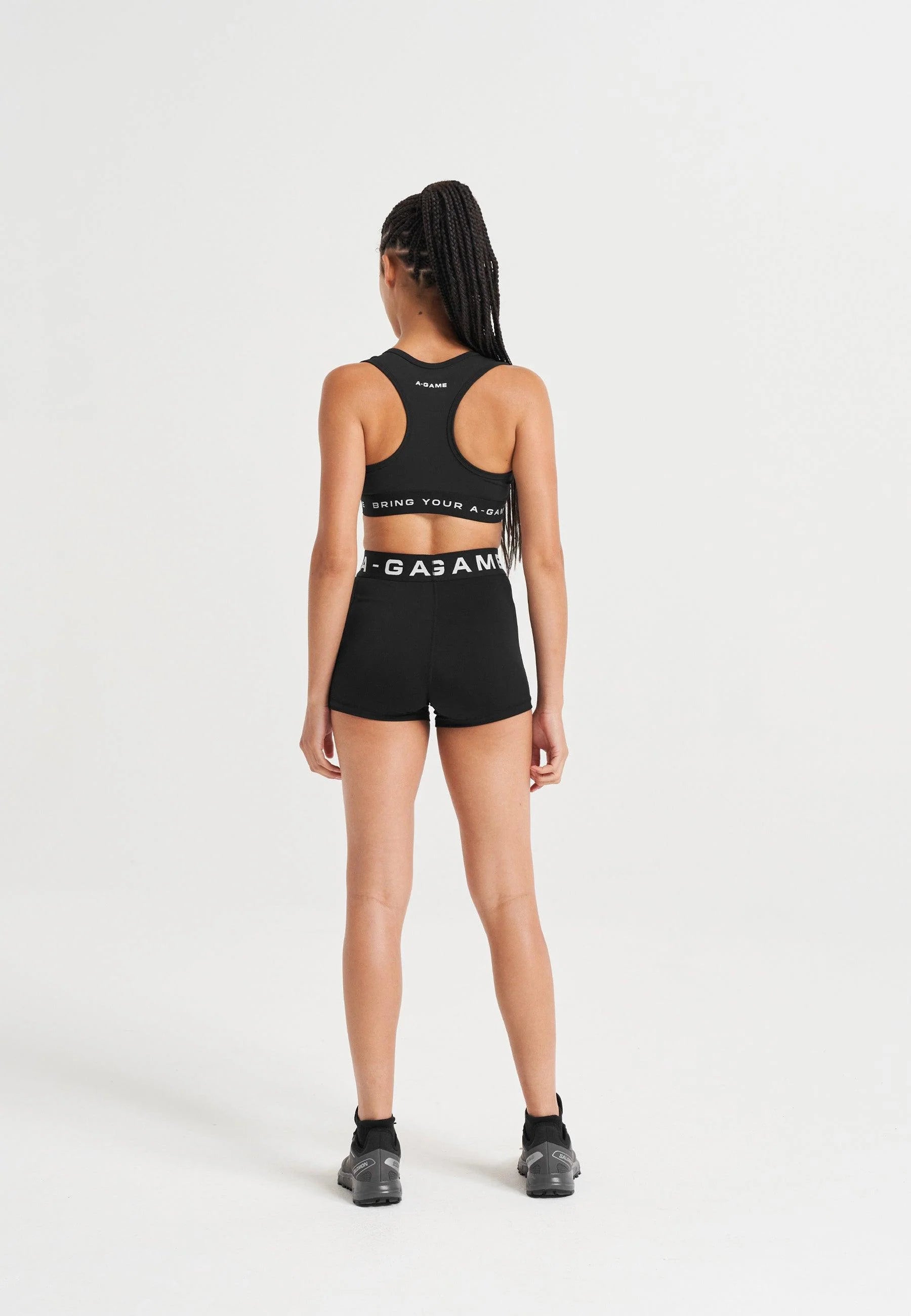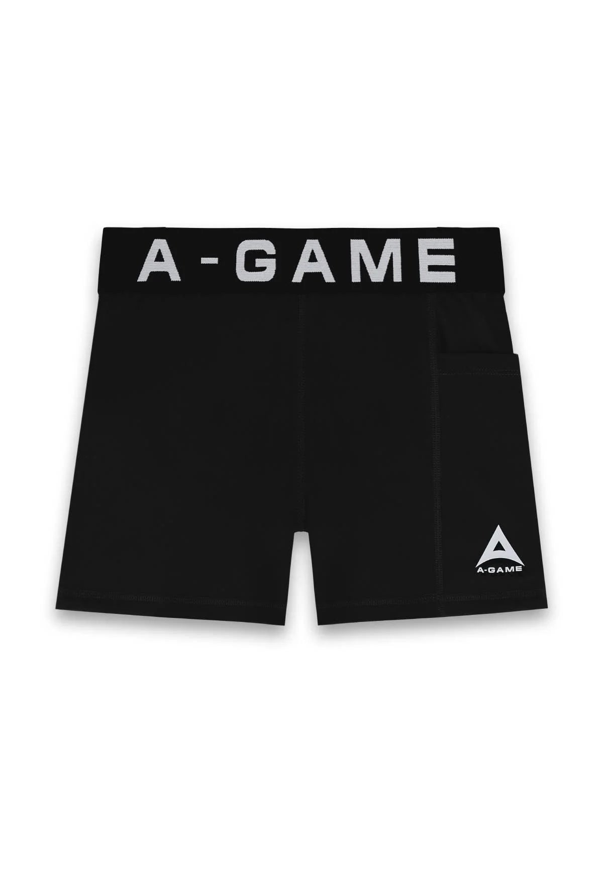 A-GAME LOGO TRAINING CROPPED SHORTS in pure black.