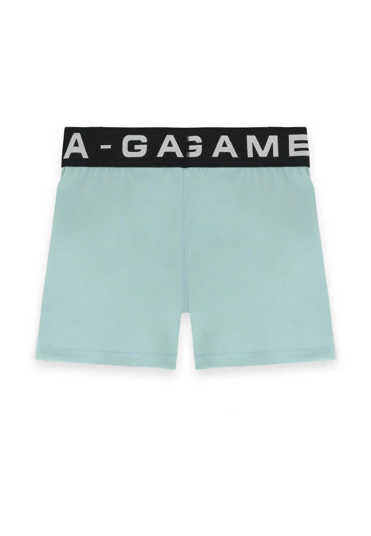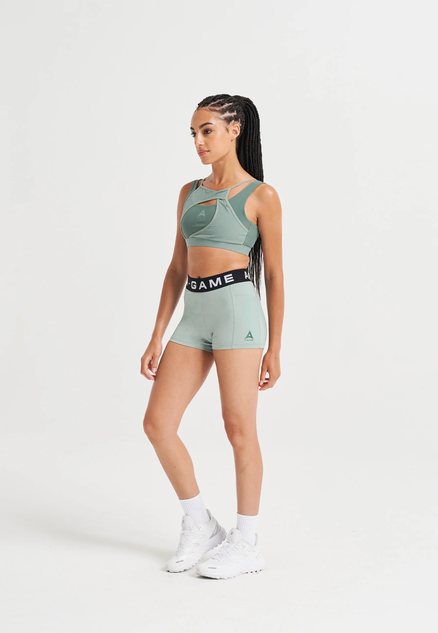 A-GAME LOGO TRAINING CROPPED SHORTS in sage green.