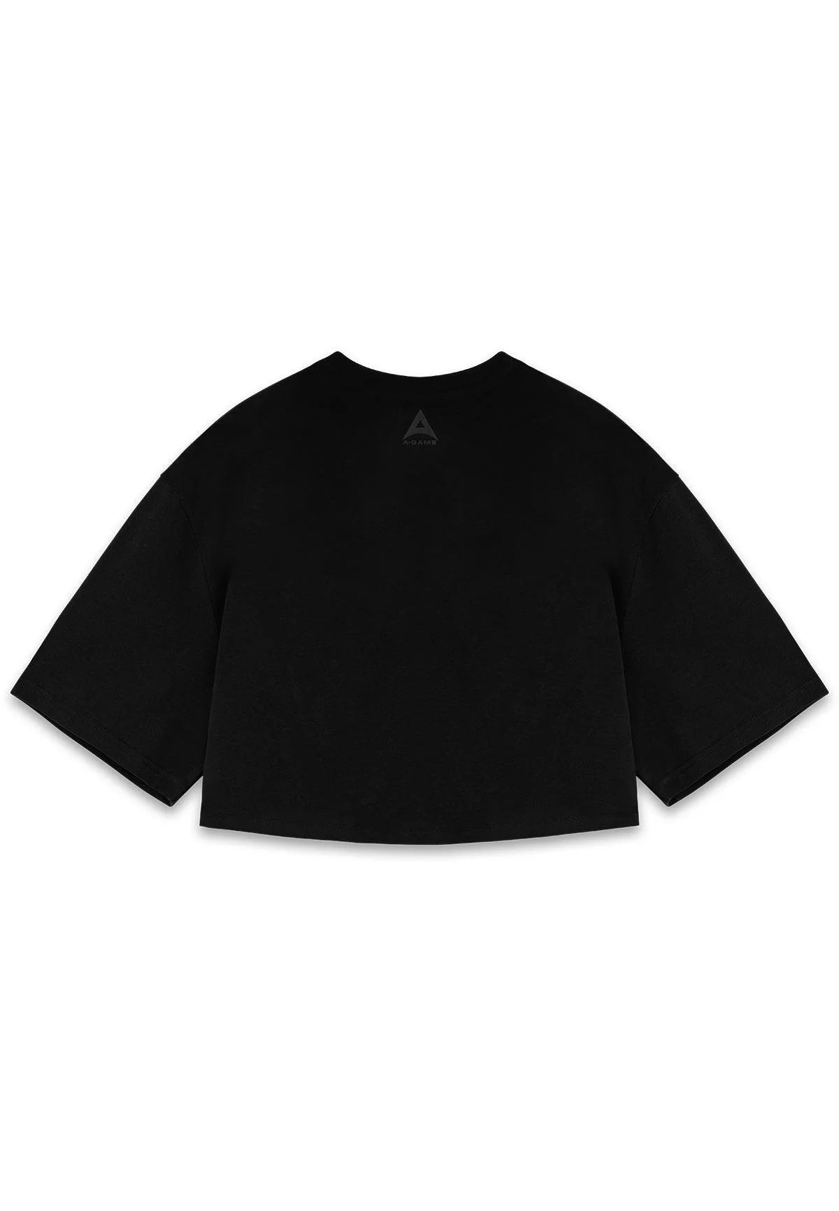 A-Game ROTATE LOGO RELAXED CROPPED TSHIRT in pure black.