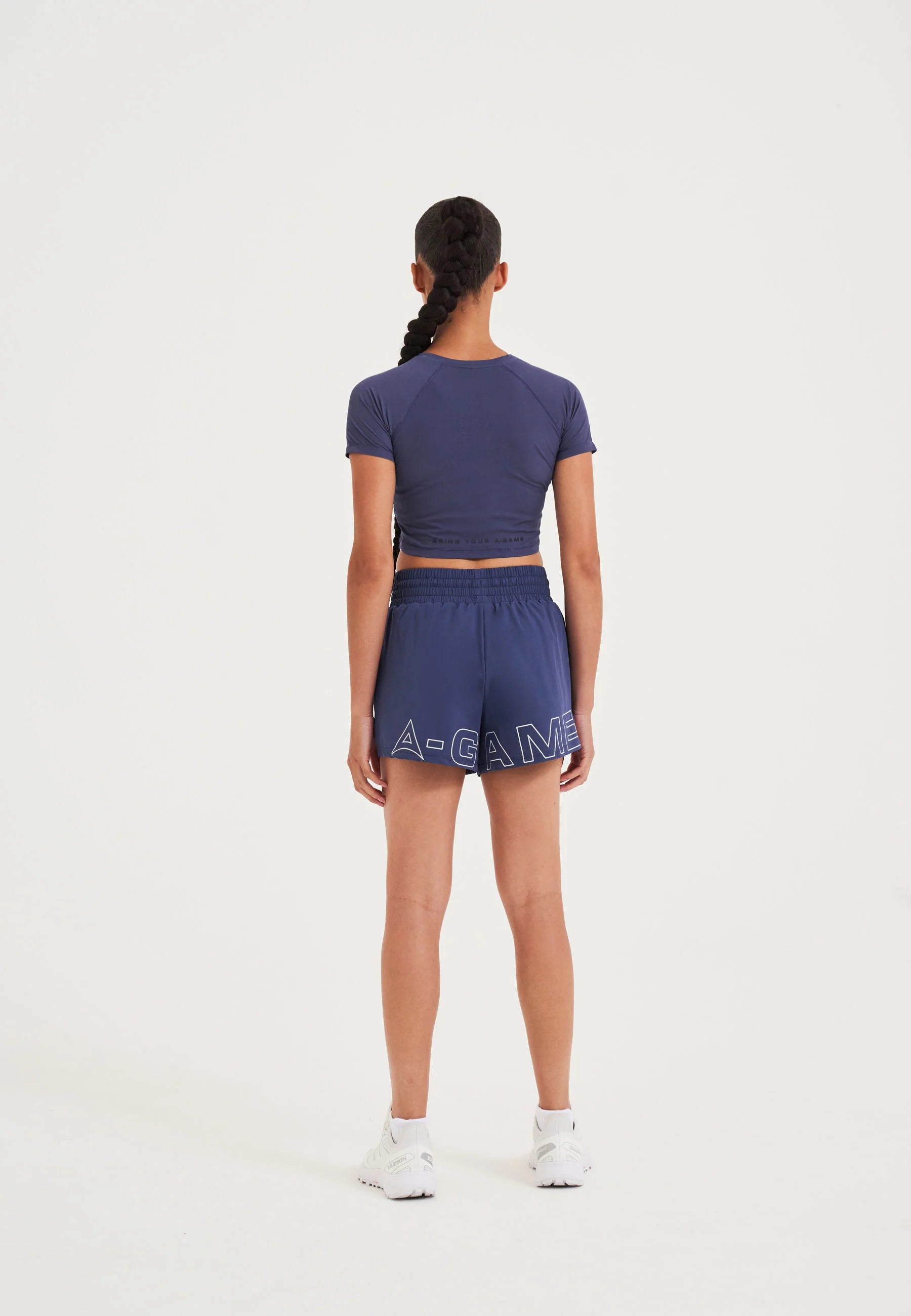 WOMENS A-GAME TRAINING RUNNER SHORTS - BLUE