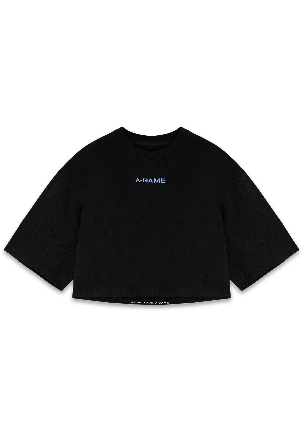 WOMENS BRING YOUR A-GAME RELAXED CROPPED T-SHIRT - BLACK