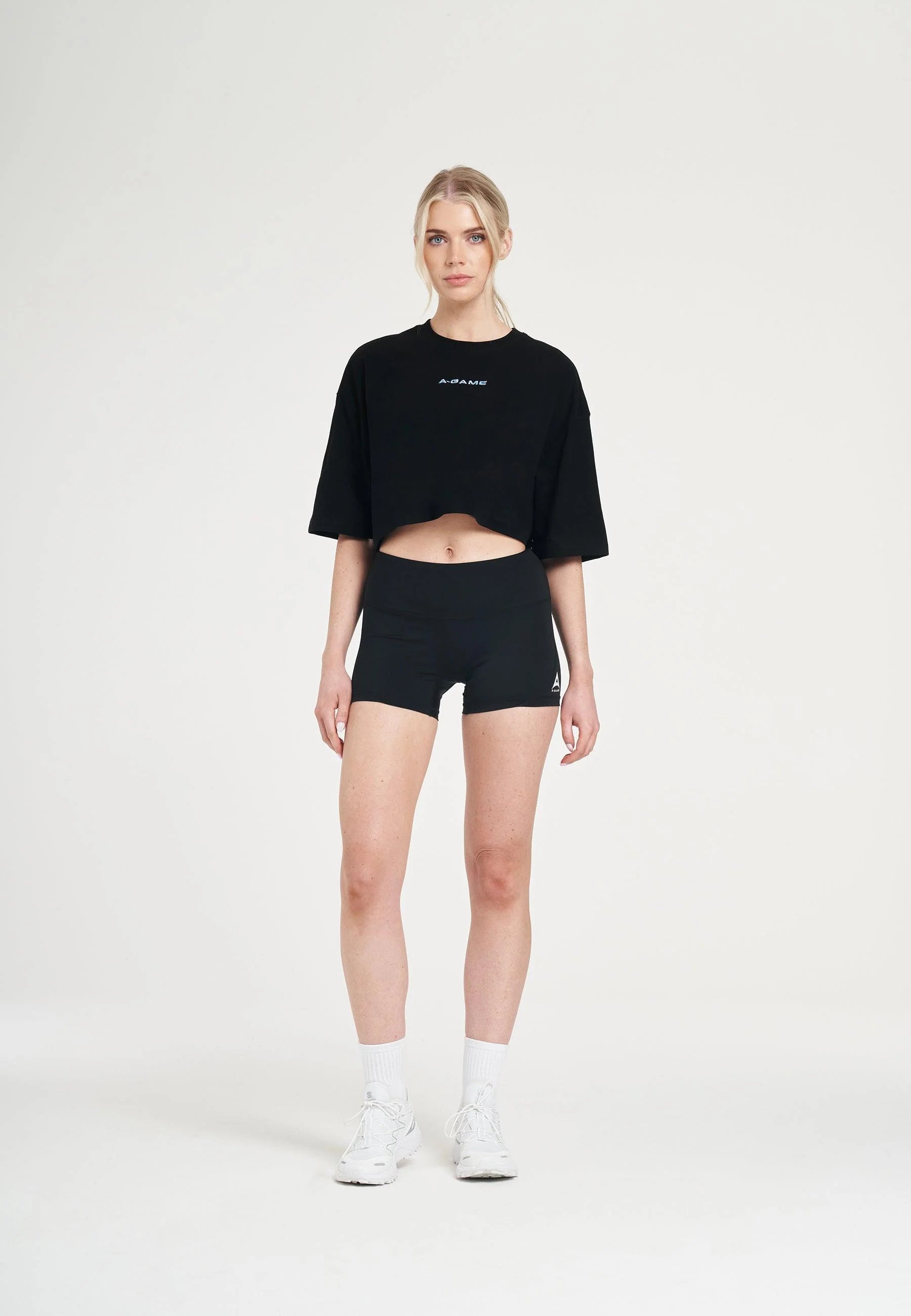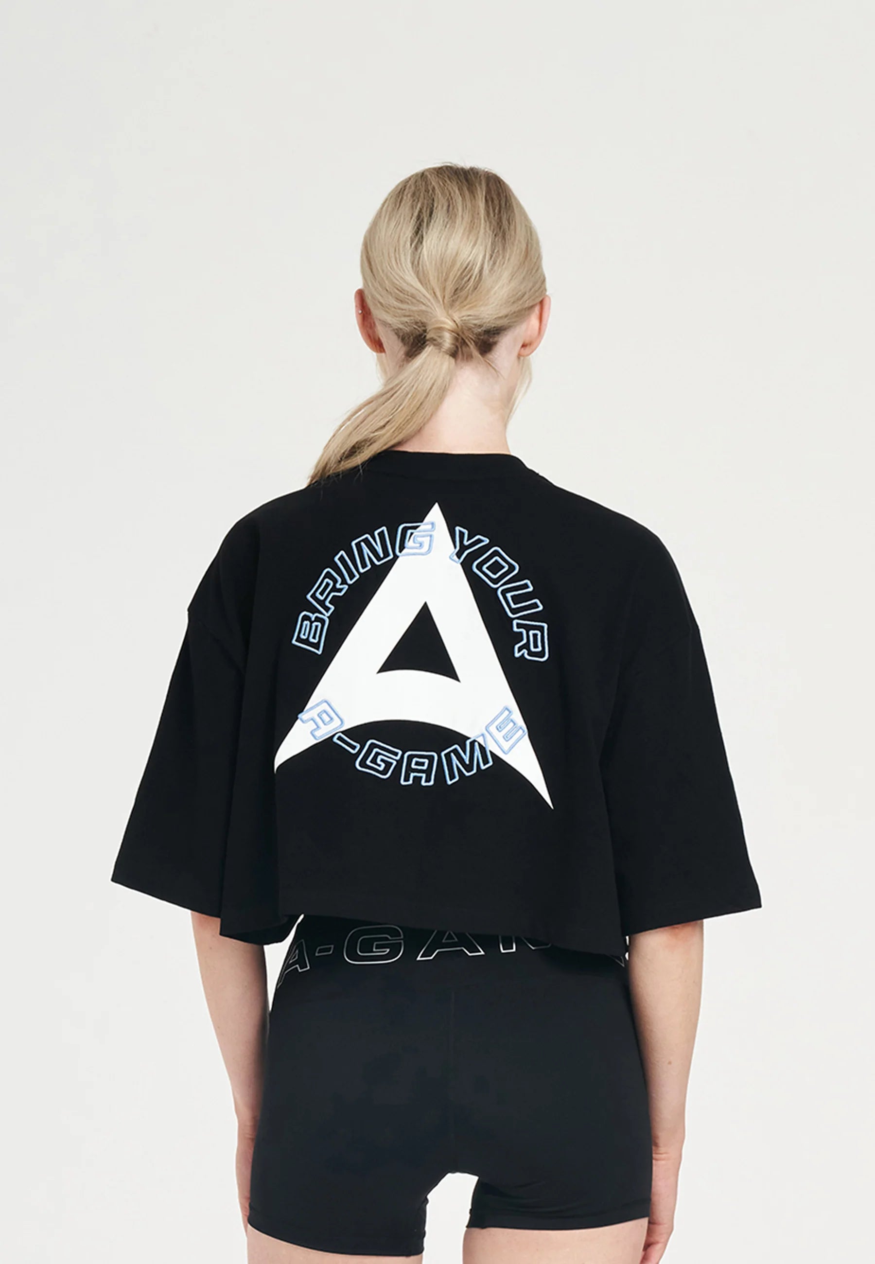 LIFEWEAR CROPPED A-GAME ICON SHORT-SLEEVE TOP in black.