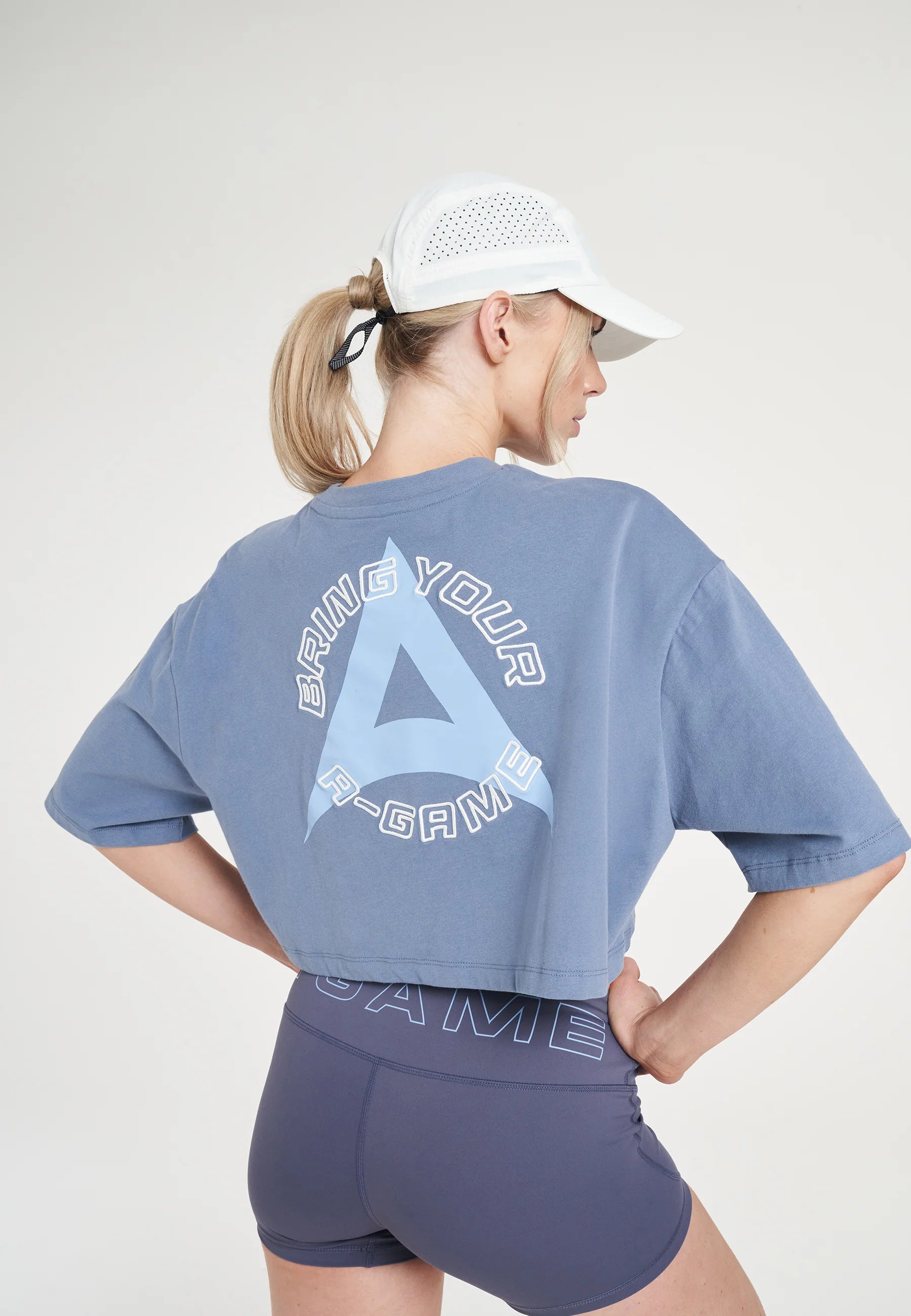 WOMENS BRING YOUR A-GAME RELAXED CROPPED T-SHIRT - ELEMENTAL BLUE