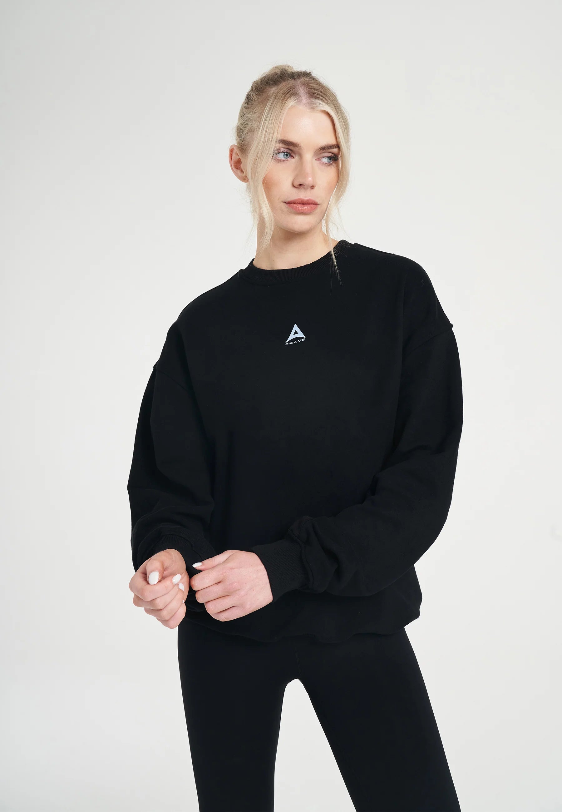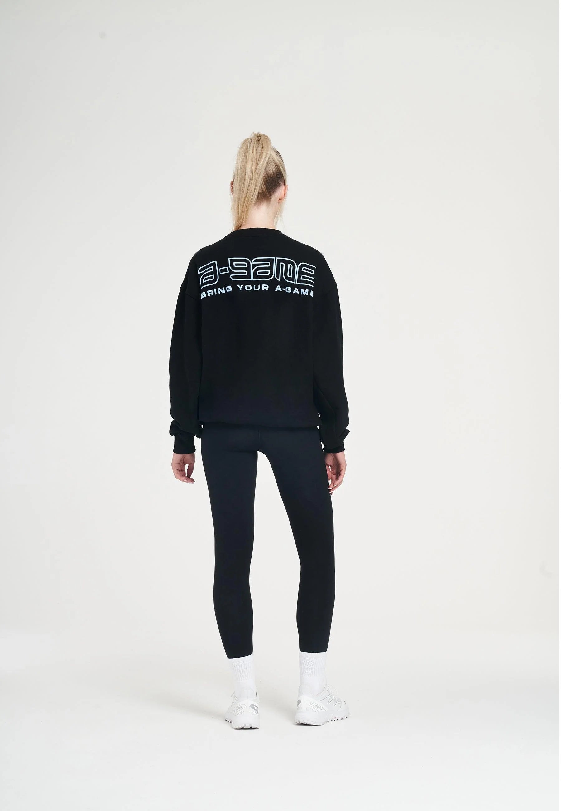 WOMENS ICON A-GAME LOGO GRAPHIC SWEATSHIRT - BLACK